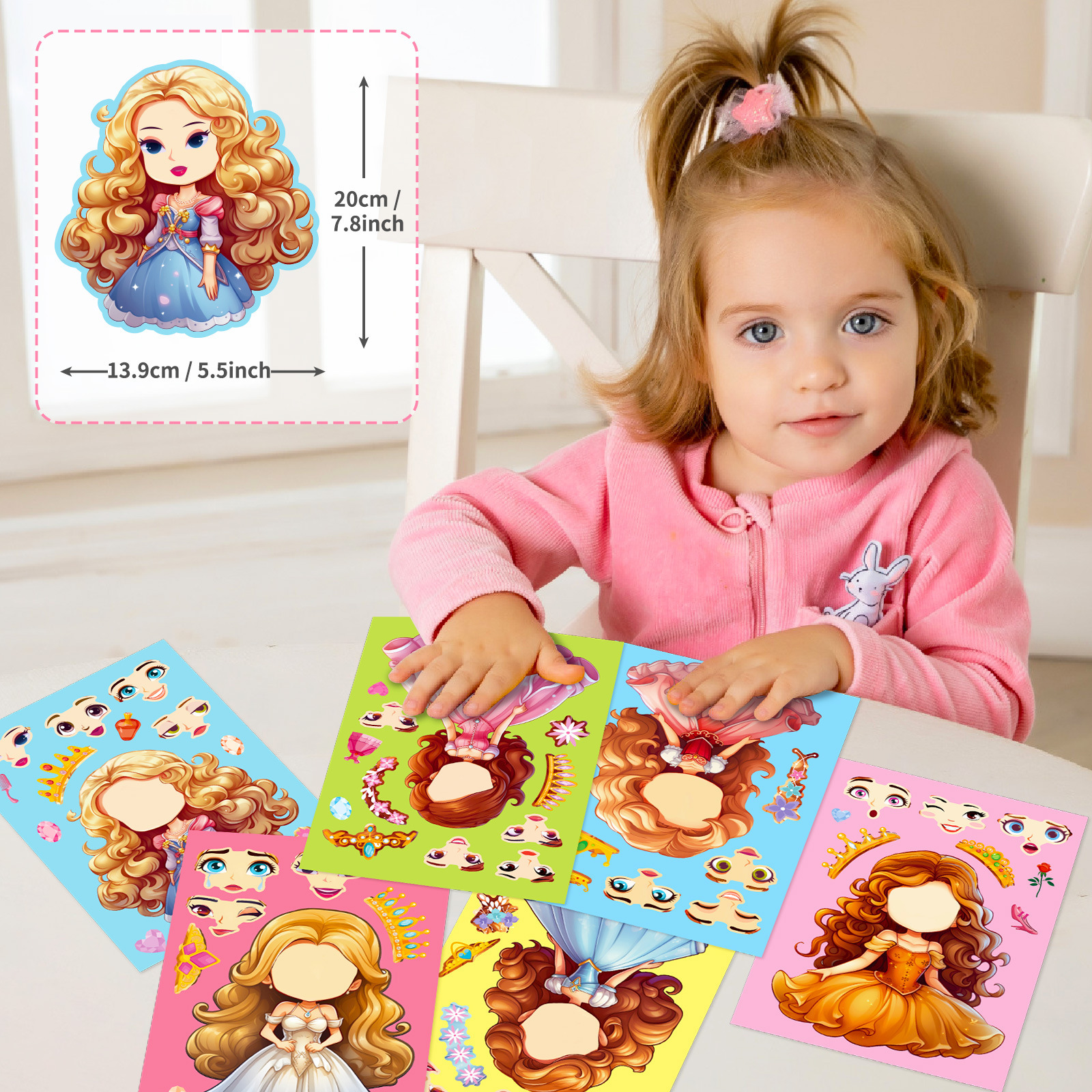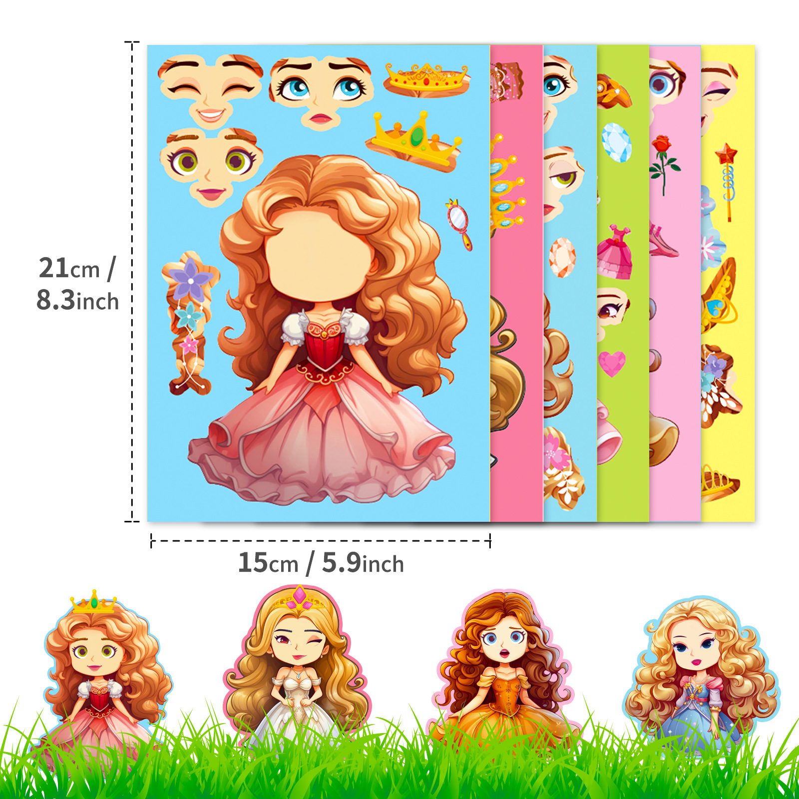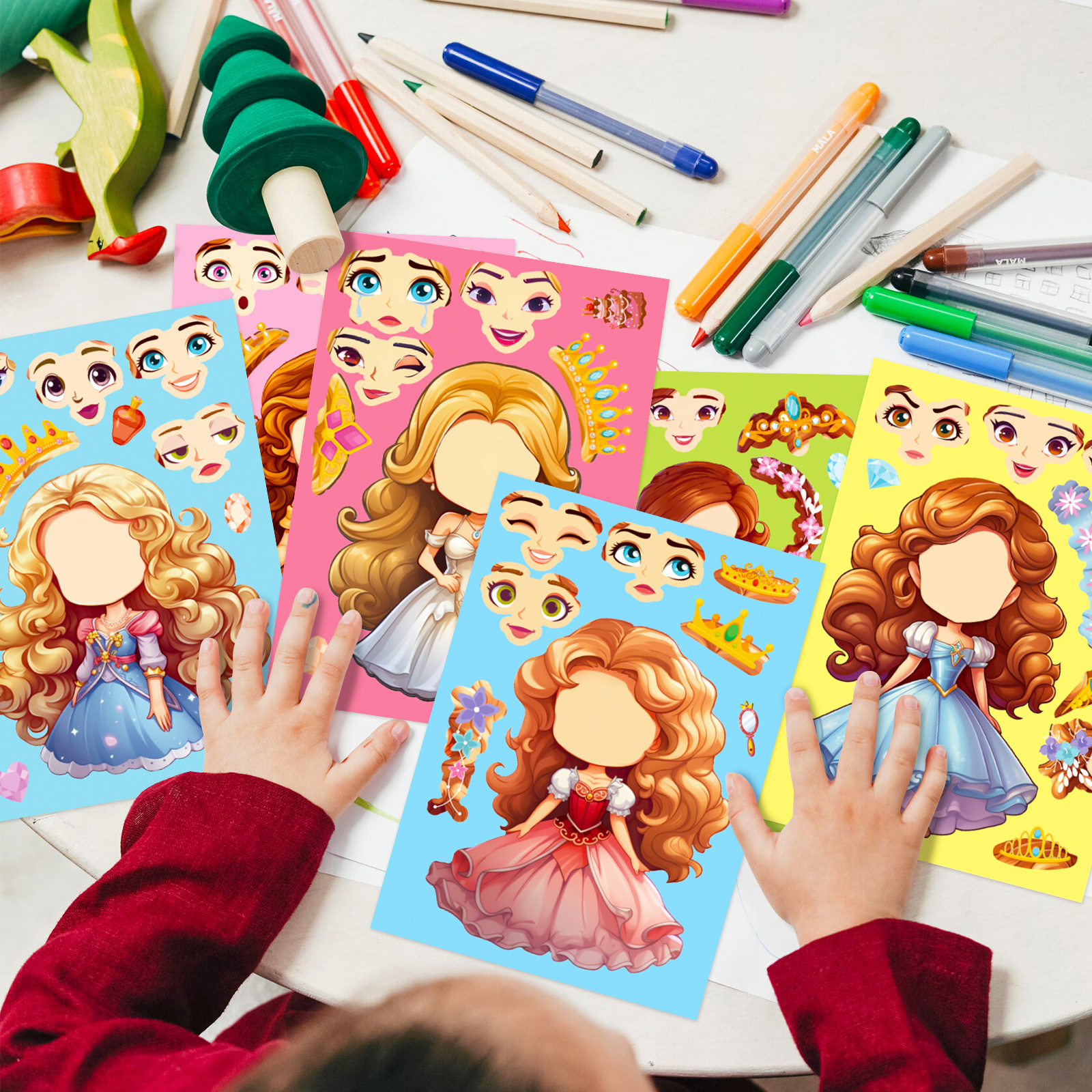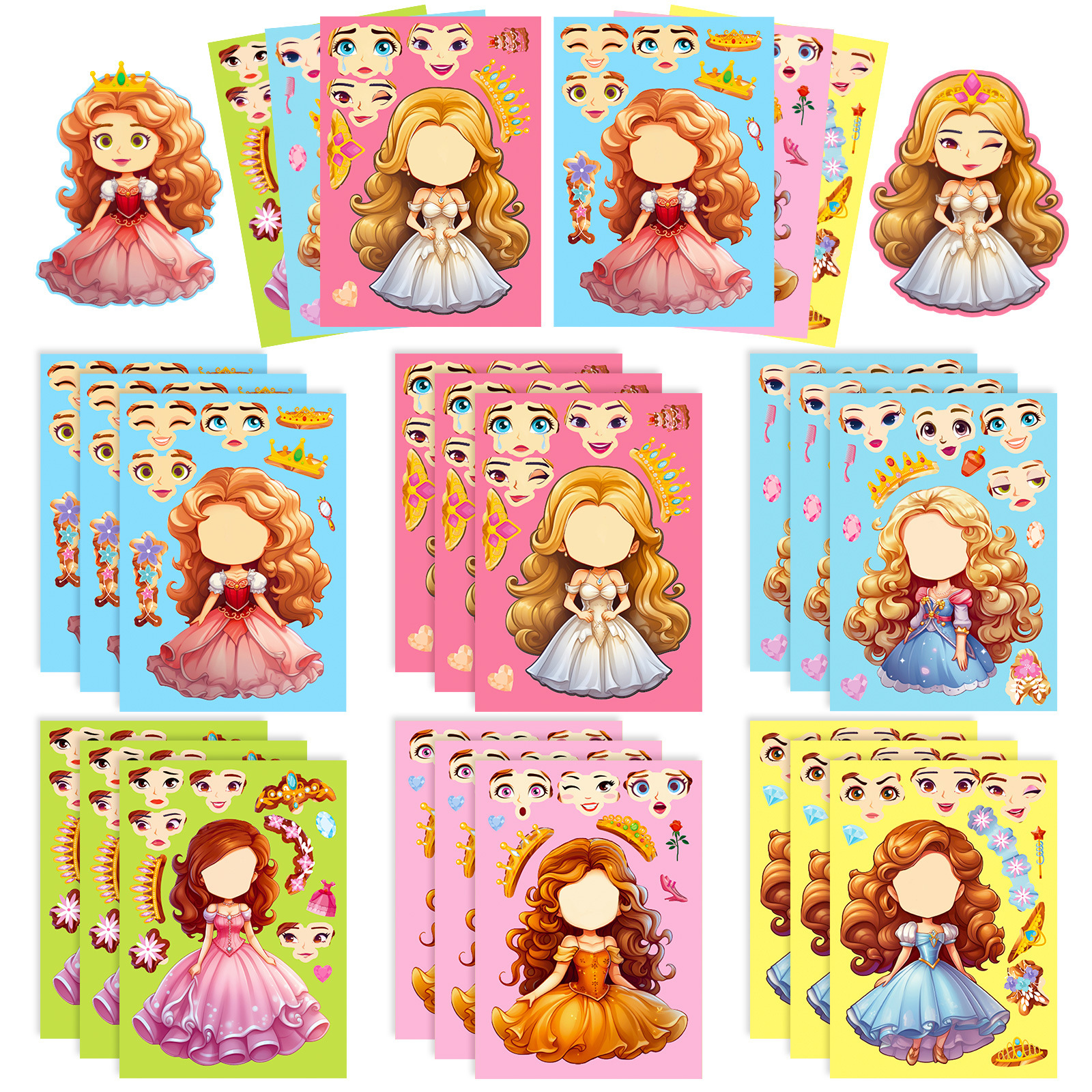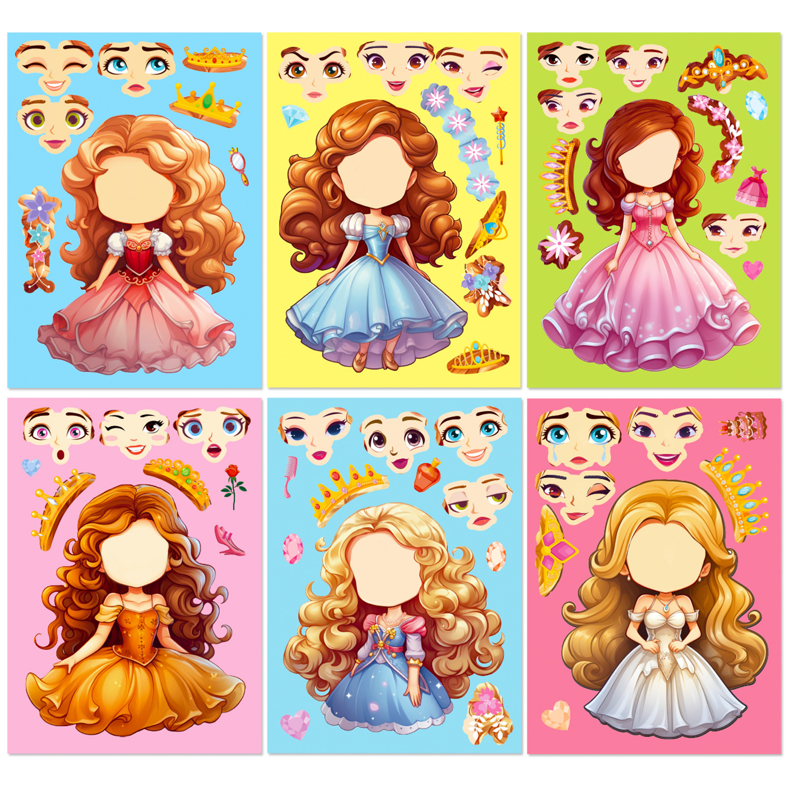 6 시트/팩 공주 만화 귀여운 공주 얼굴 변경 드레스 업 퍼즐 스티커 어린이 독립 DIY 얼굴 변경 스티커스토어 가기