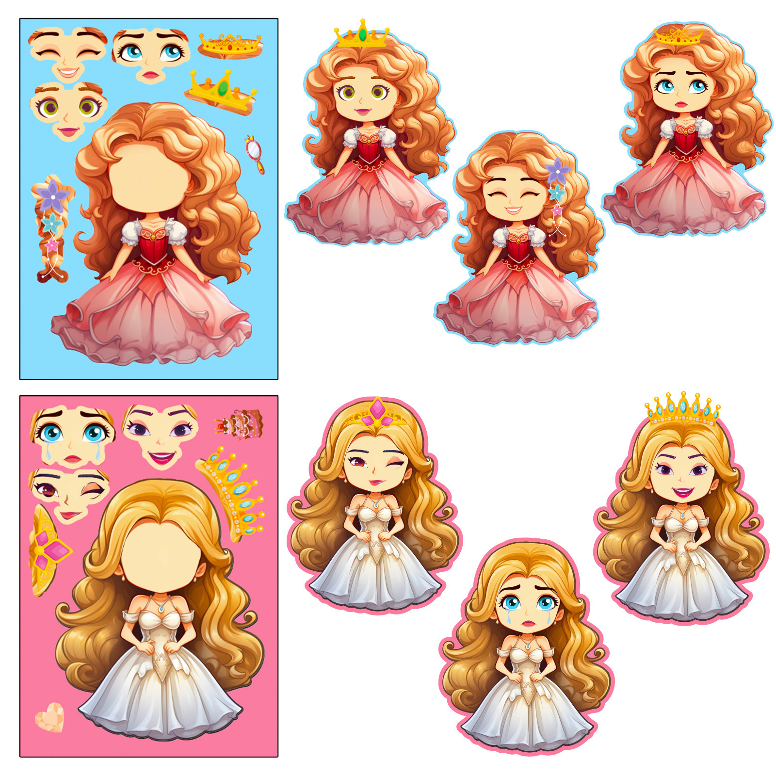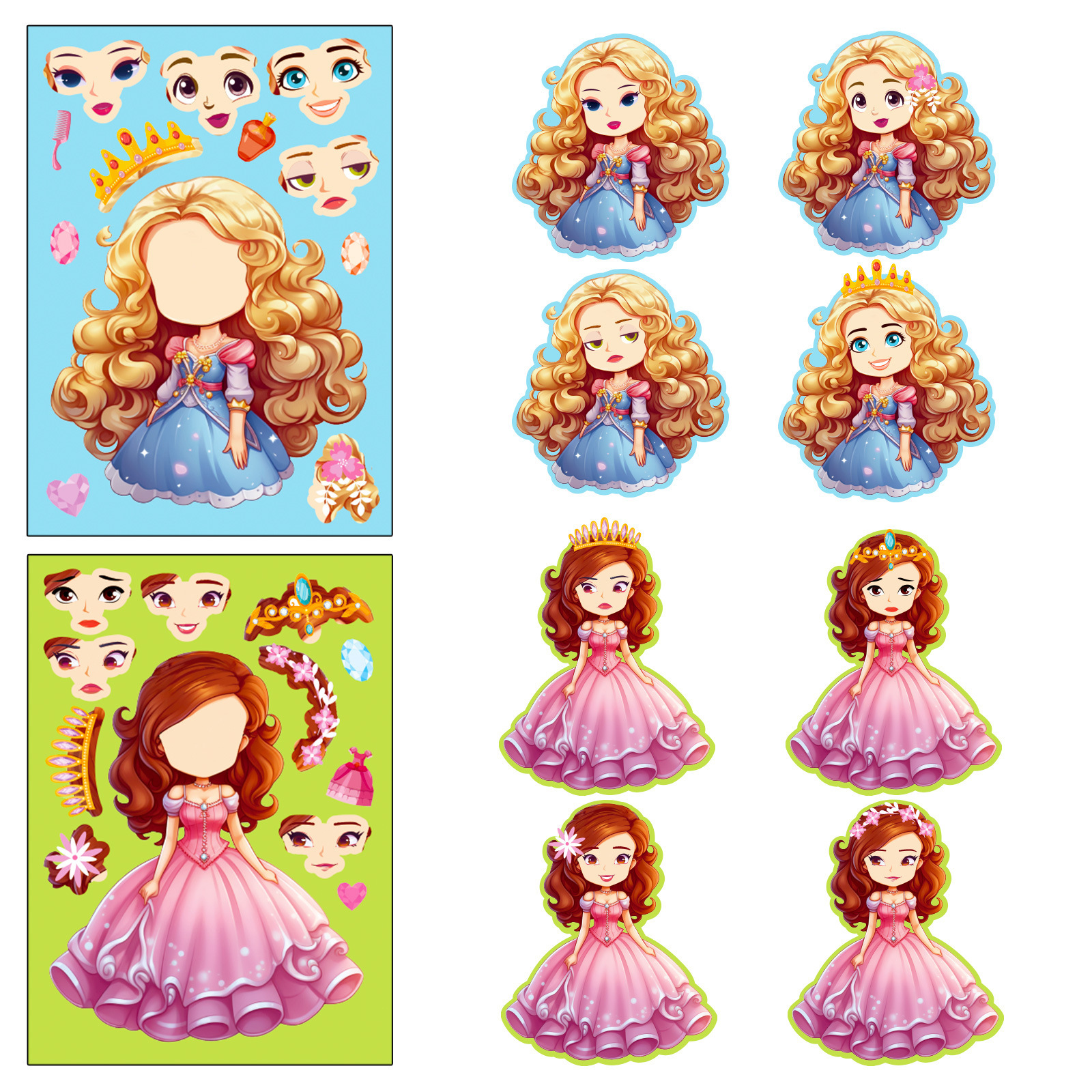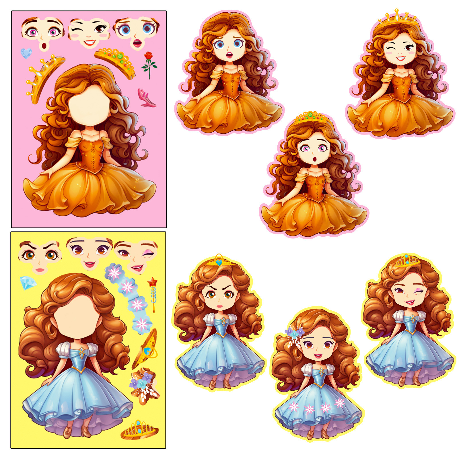 6 시트/팩 공주 만화 귀여운 공주 얼굴 변경 드레스 업 퍼즐 스티커 어린이 독립 DIY 얼굴 변경 스티커