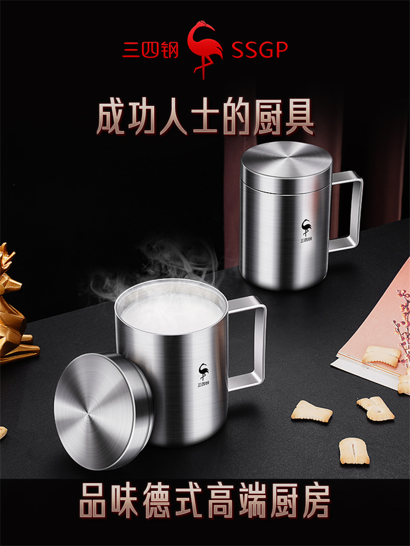SSGP316 스테인레스 스틸 워터 컵 어린이 손잡이와 뚜껑 커피 컵 차 컵 차 컵 남녀 사무실 컵스토어 가기