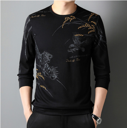 2023 년 여름 새 긴팔 티셔츠 남성 의류 중년 유행 캐주얼 반소매 인쇄 탑 한국 남성스토어 가기