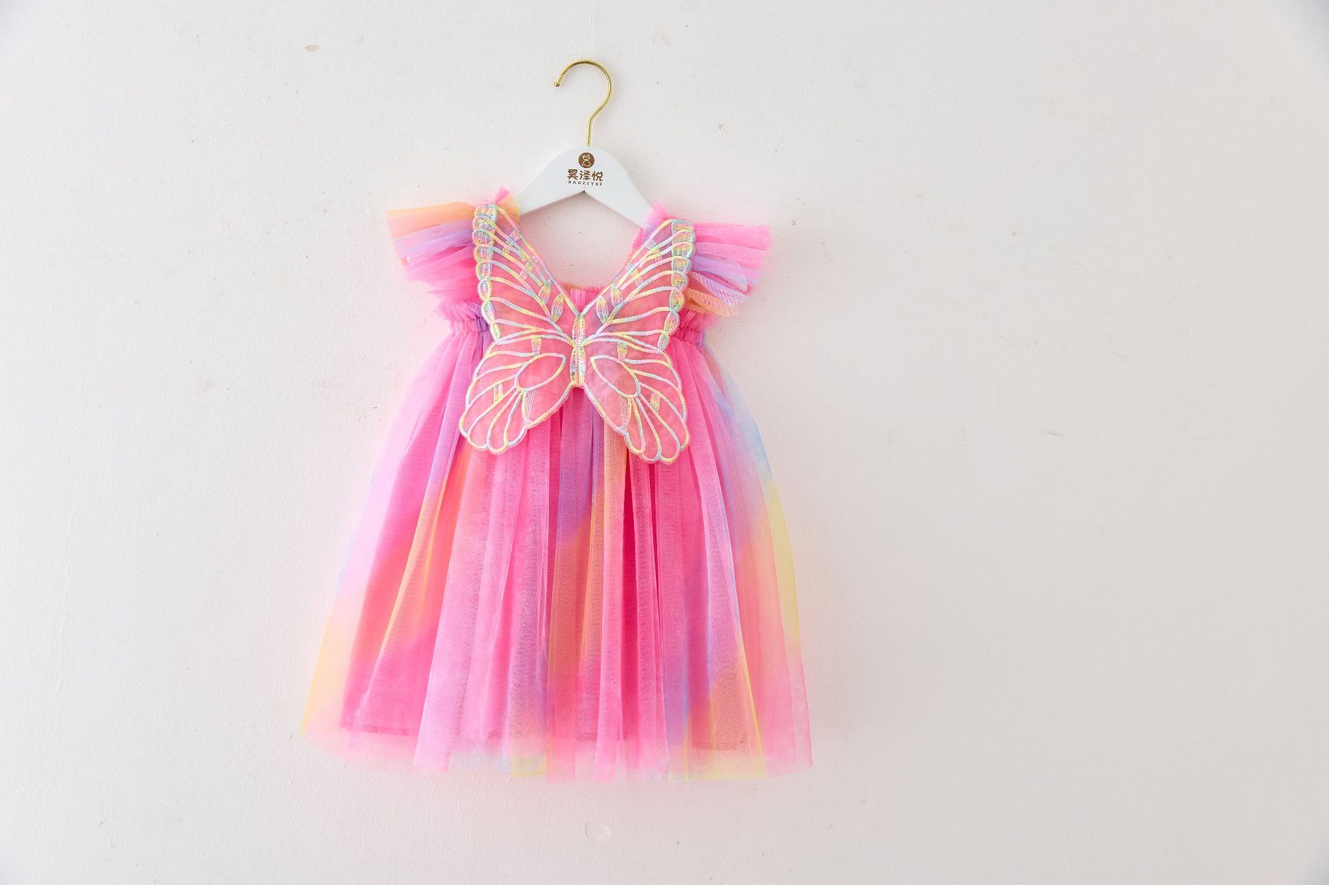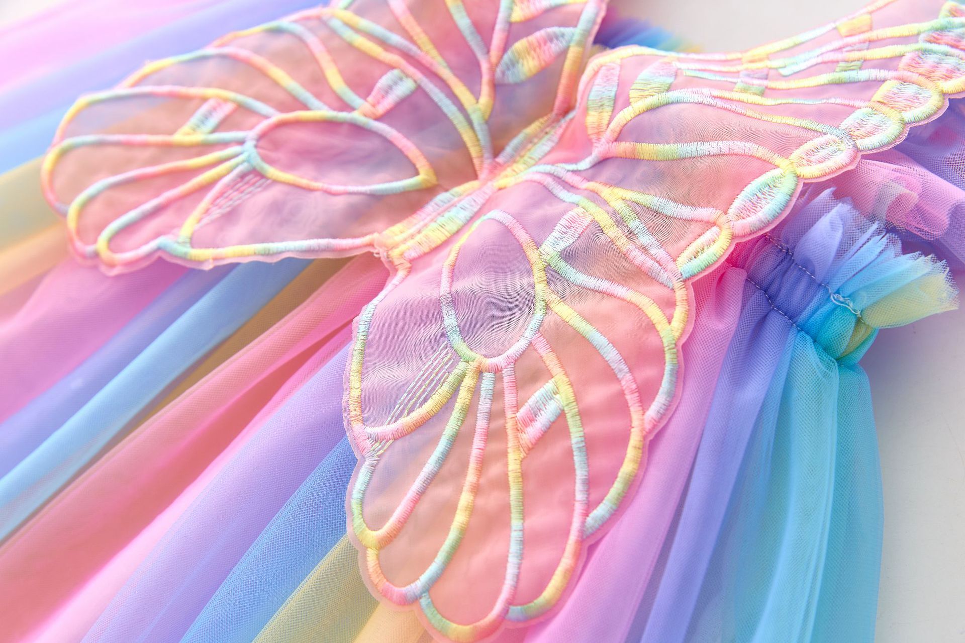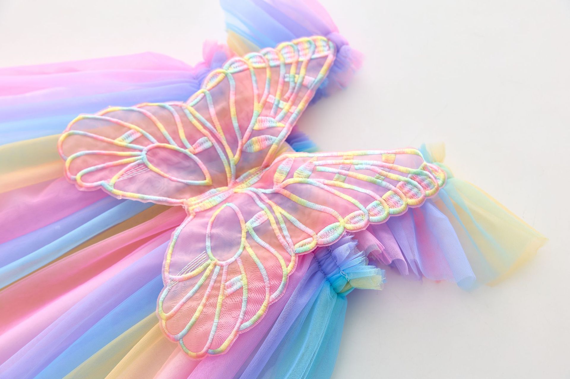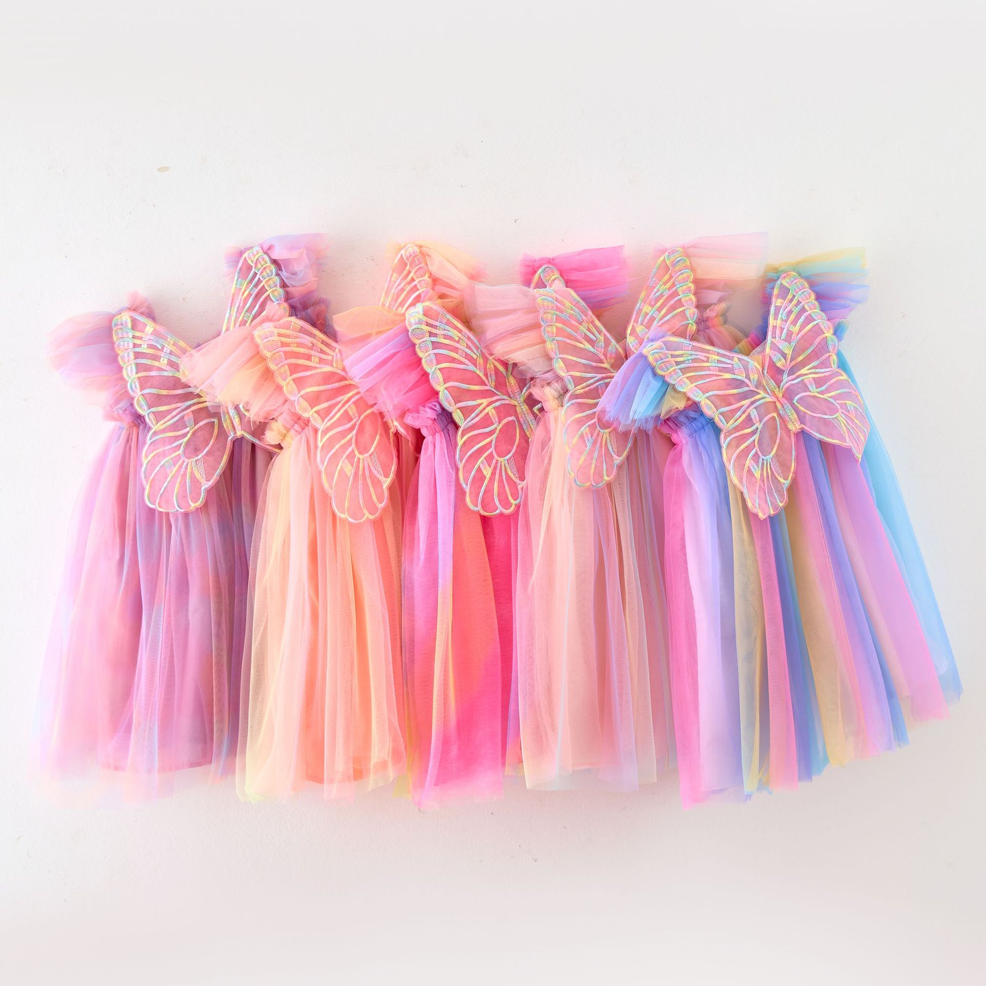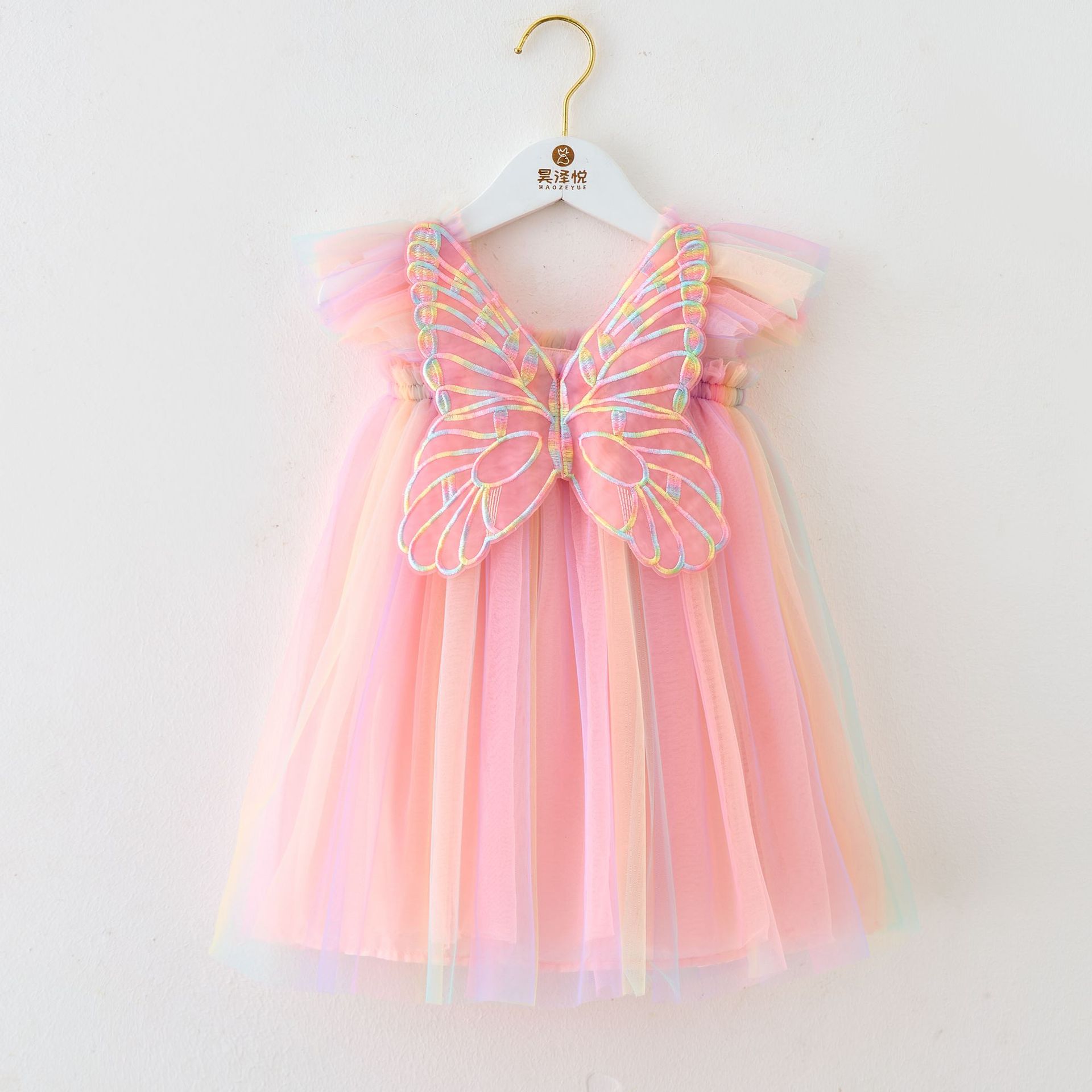 무지개 어린이 메쉬 원피스 나비 날개 공주 원피스 소녀의 비행 소매 슬립 원피스 아기의 퍼프 원피스스토어 가기