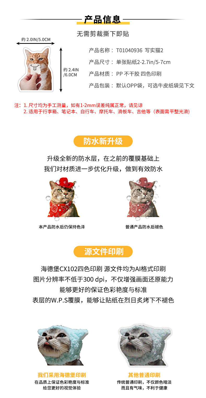 50 고양이 스티커 귀여운 귀여운 애완 동물 고양이 귀여운 그물 빨간 고양이 표현 가방 낙서 국경 스티커 도매