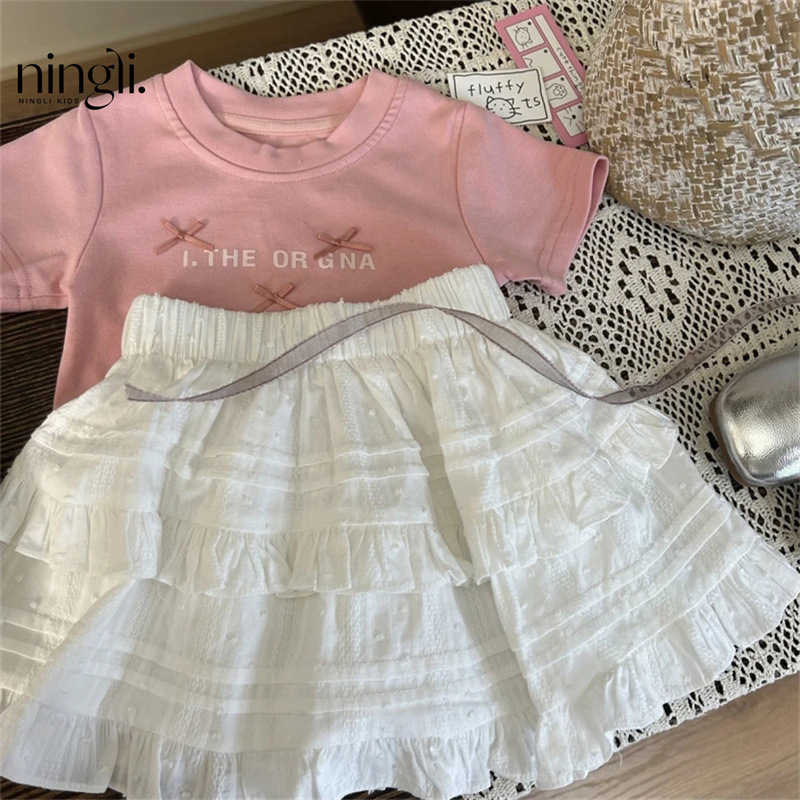 레몬 아기 소녀 슈퍼 달콤한 발레 공주 작은 활 상단 반팔 꽃 원피스 아기 소녀 세트 트렌디스토어 가기