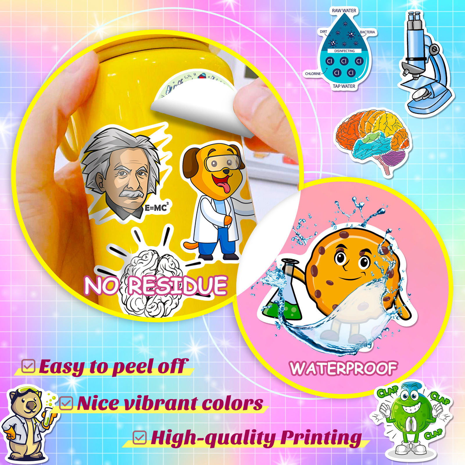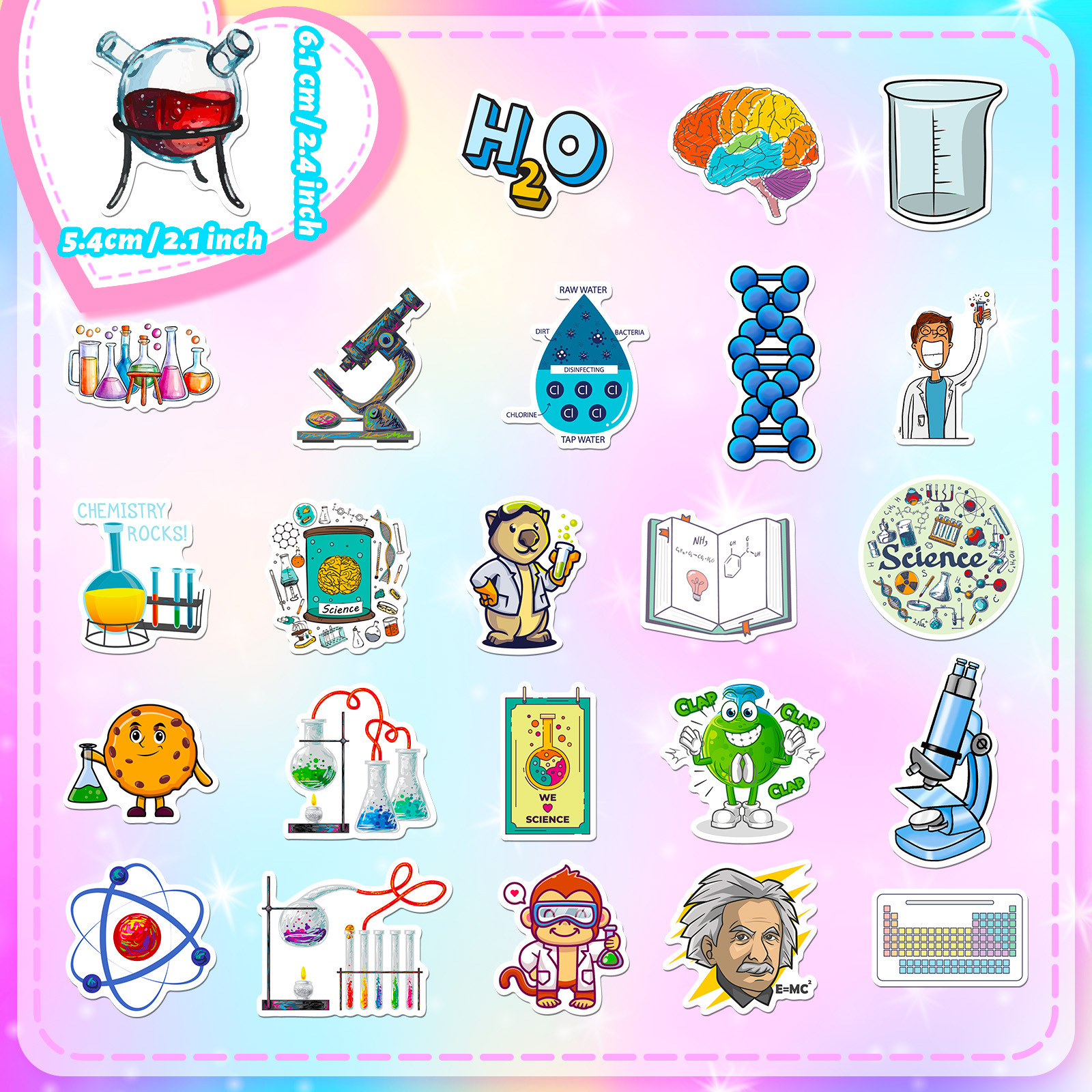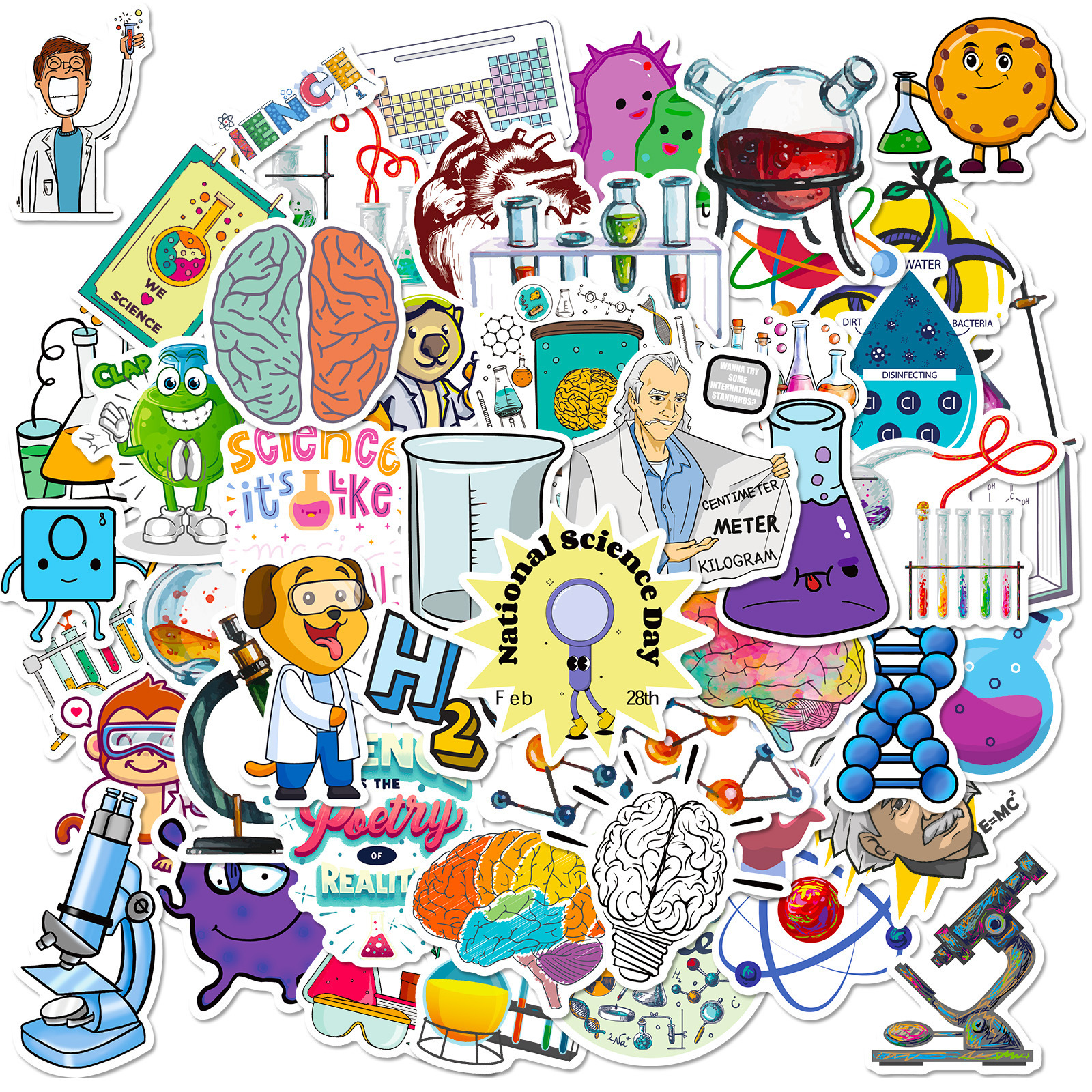 50 개의 실험 장치 스티커 물리적 및 화학 장비 만화 스티커 약사 화학 방정식 성격 스티커