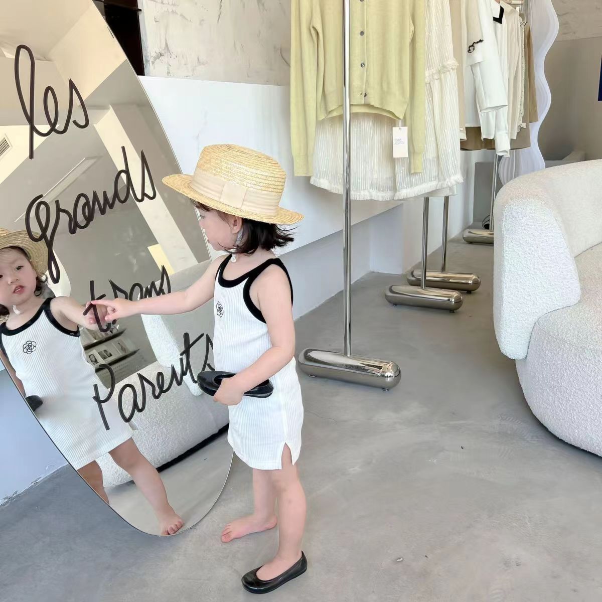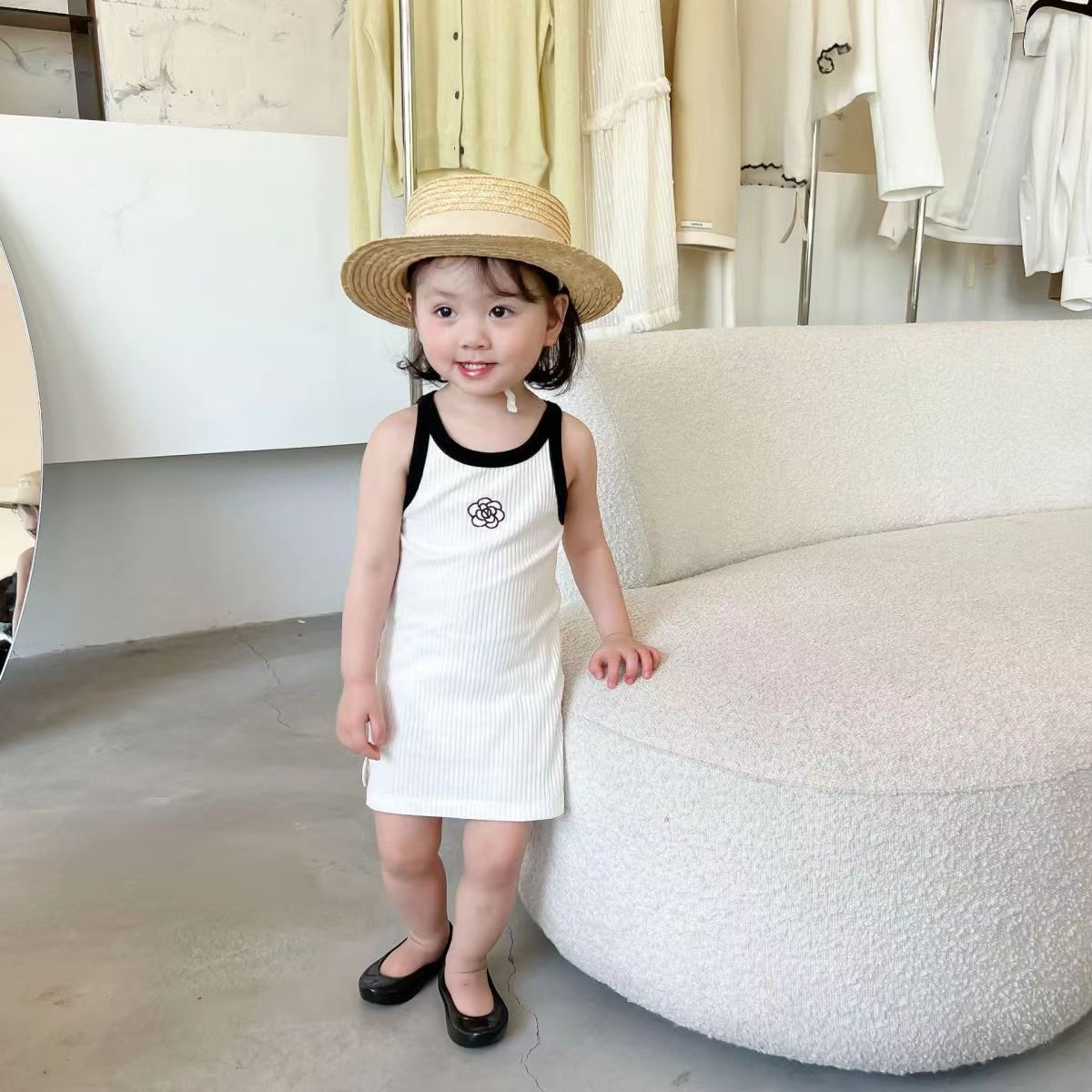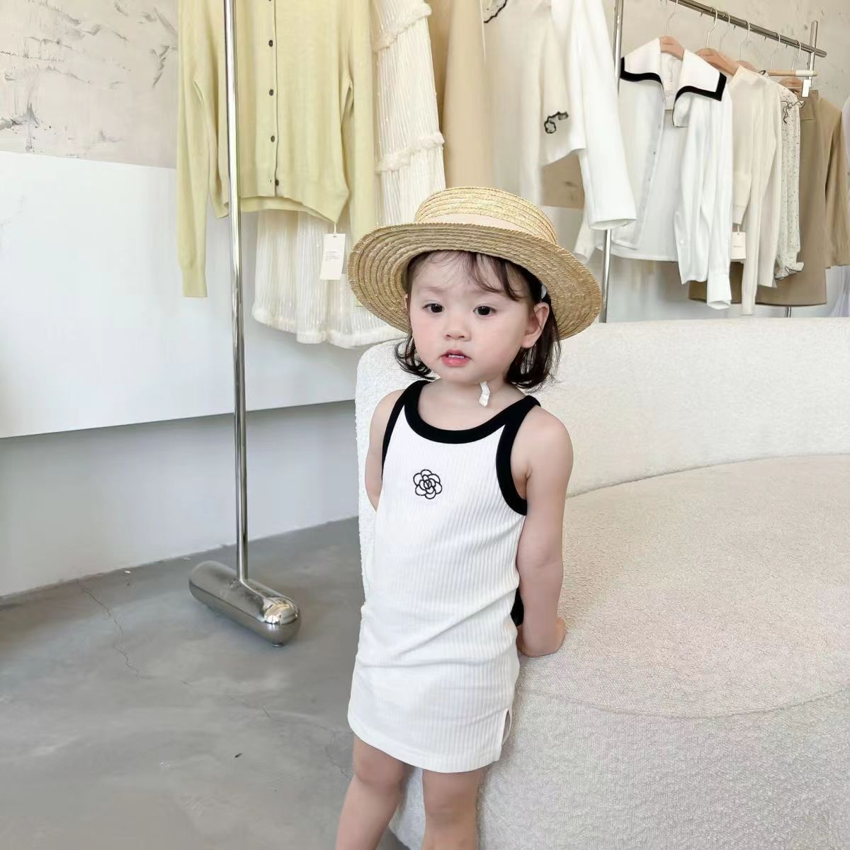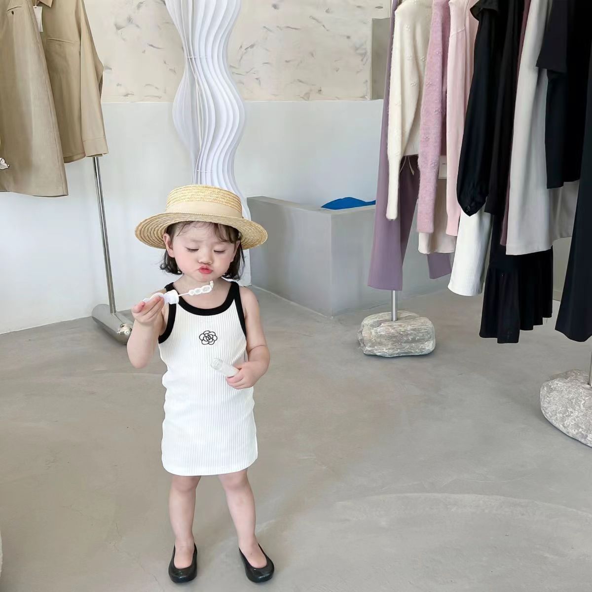 여아용 여름 원피스 작은 향기로운 스타일 동백 빅 스커트 여름 얇은 스트레치 스트랩 스커트스토어 가기