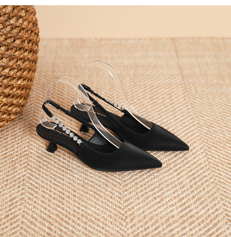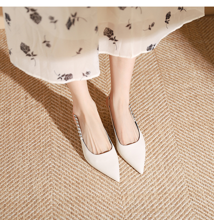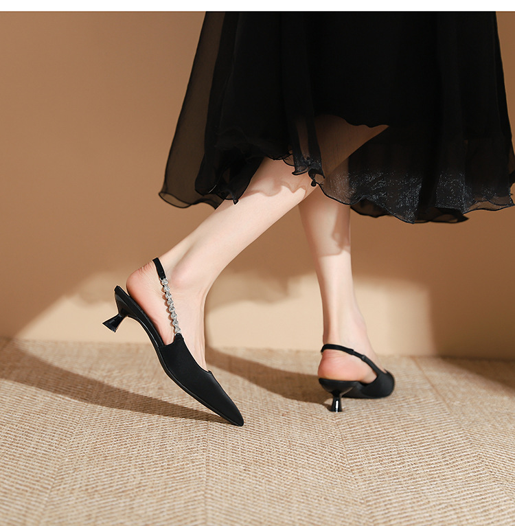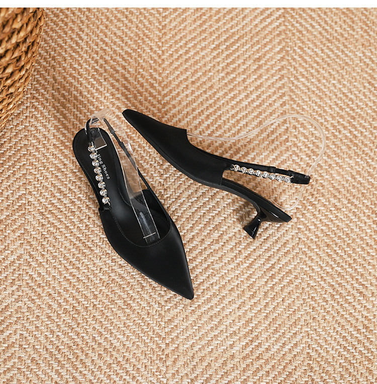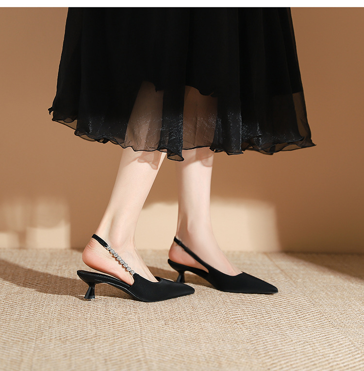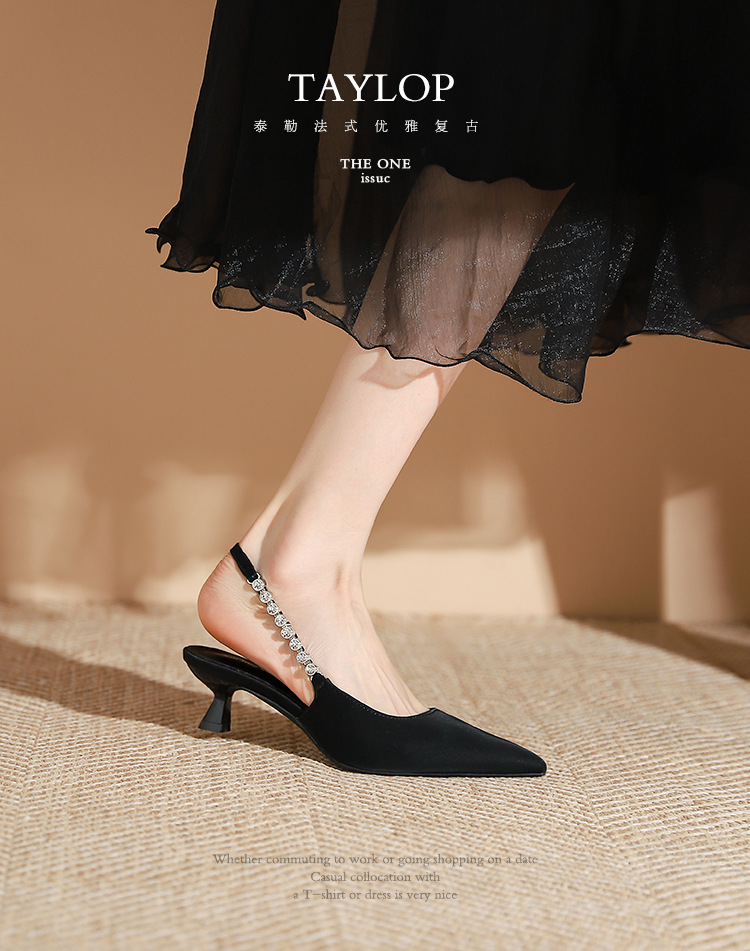 198-5 작은 Xiangfeng 뾰족한 체인 트립 벨트 미드 힐 싱글 레이어 신발 여성의 새로운 후면 빈 얕은 얇은 뒤꿈치 싱글 레이어 신발 여성 신발스토어 가기