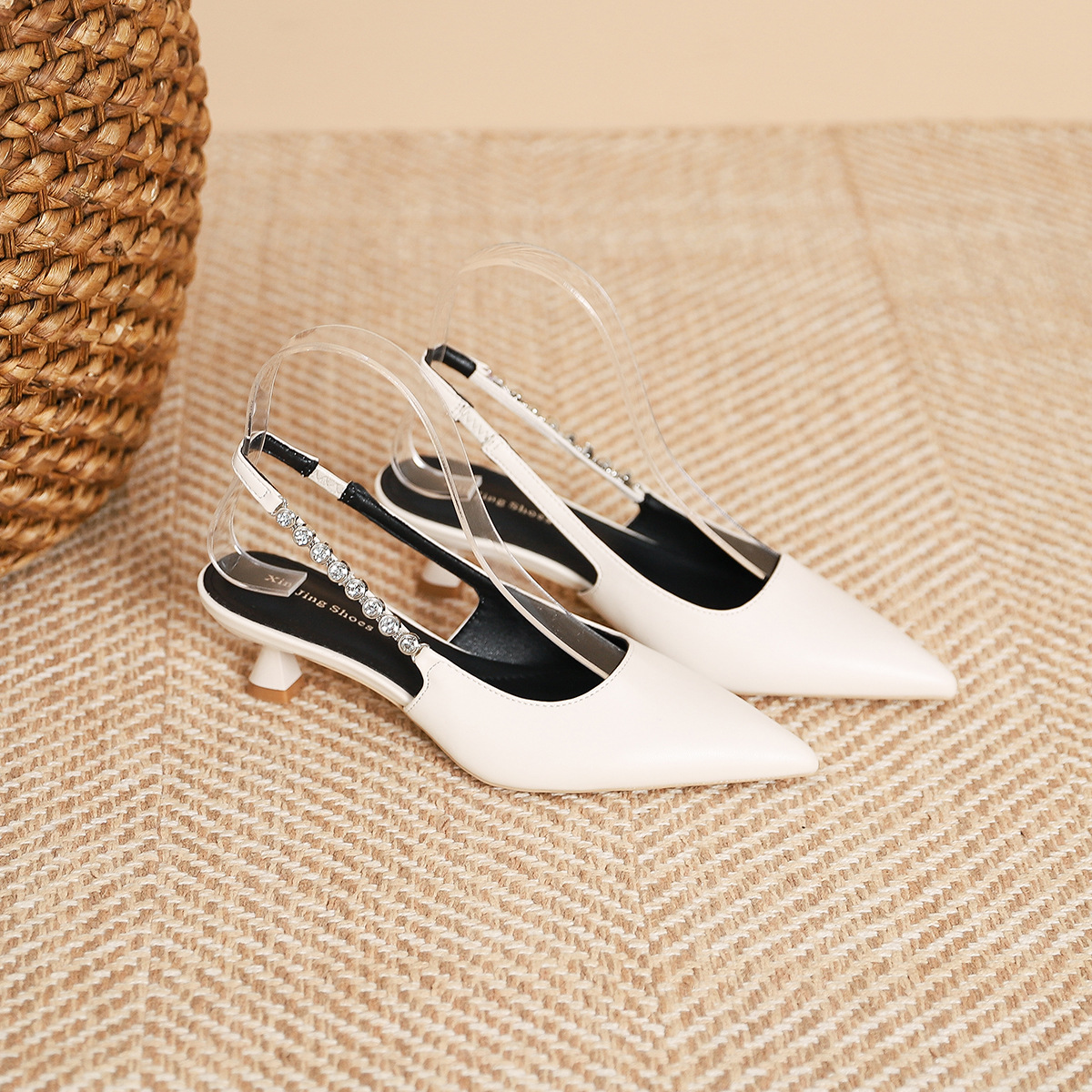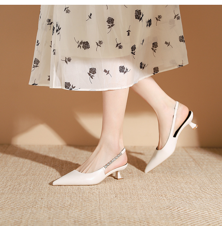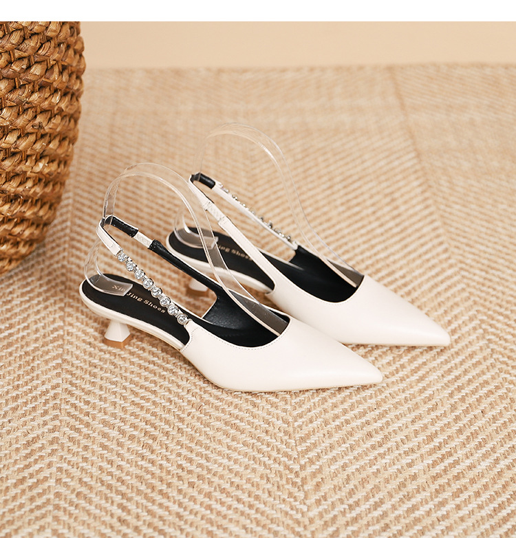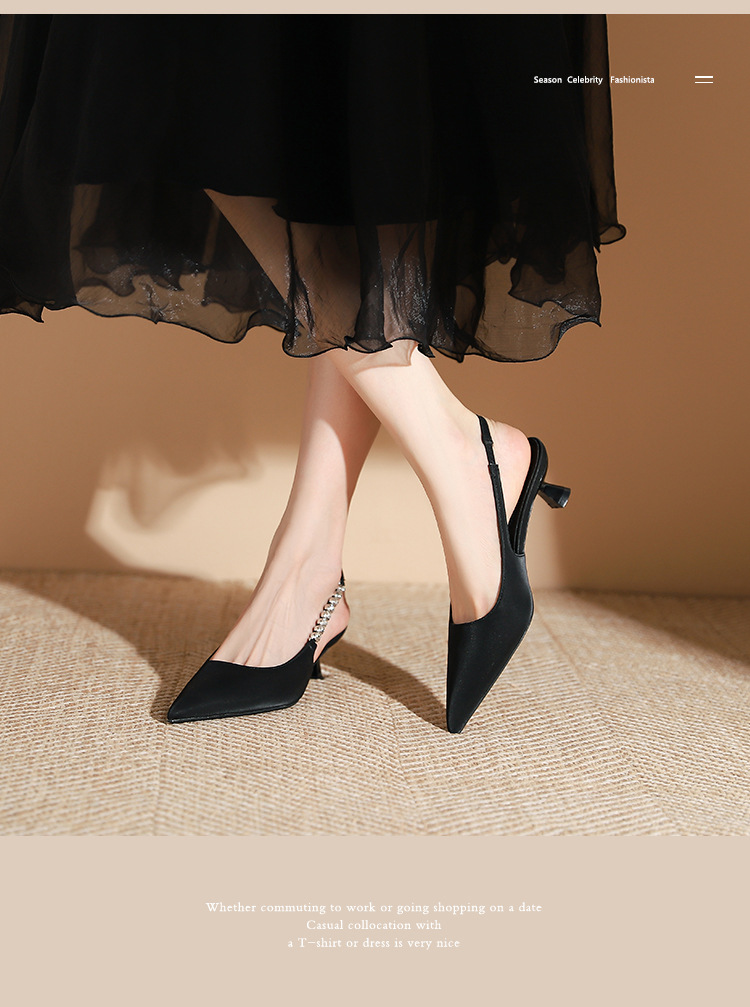 198-5 작은 Xiangfeng 뾰족한 체인 트립 벨트 미드 힐 싱글 레이어 신발 여성의 새로운 후면 빈 얕은 얇은 뒤꿈치 싱글 레이어 신발 여성 신발스토어 가기