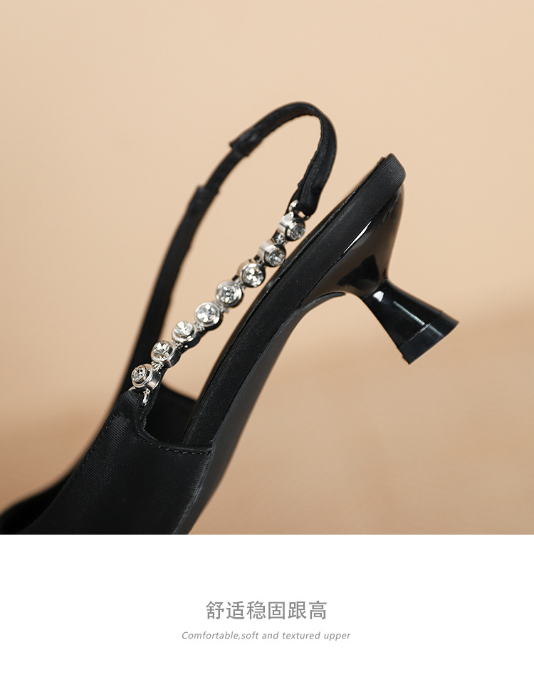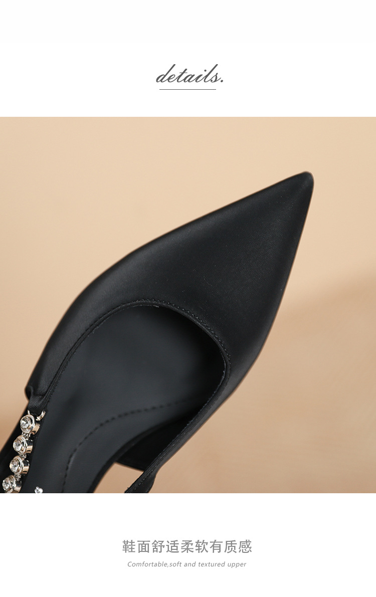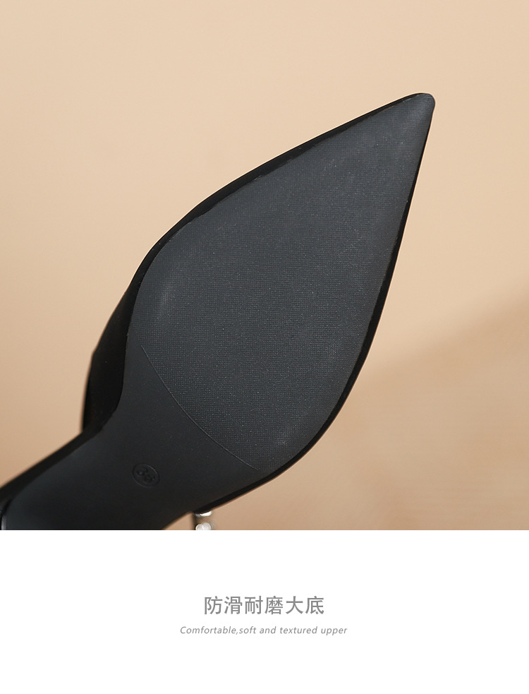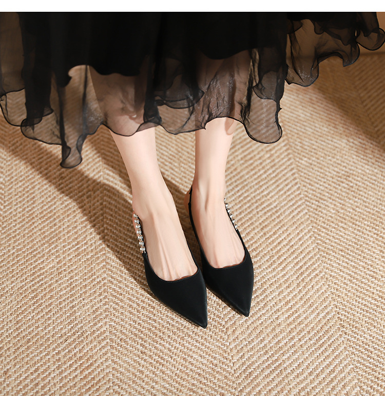 198-5 작은 Xiangfeng 뾰족한 체인 트립 벨트 미드 힐 싱글 레이어 신발 여성의 새로운 후면 빈 얕은 얇은 뒤꿈치 싱글 레이어 신발 여성 신발