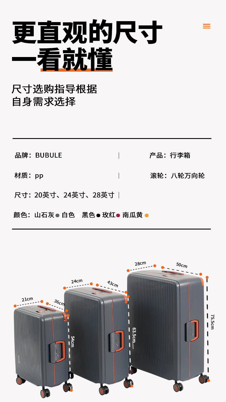 [와이드 트롤리] Bubu Le 유니버설 휠 가방 여성용 하이 루킹 가방 28inch 낙하 방지 트롤리 가방 도매스토어 가기