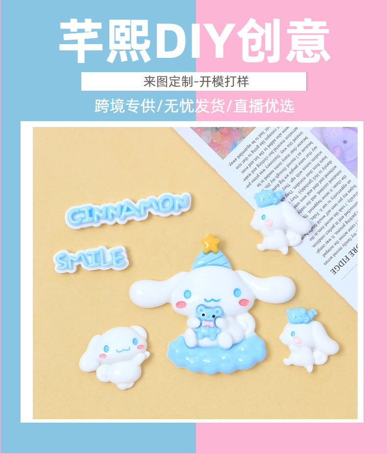 큰 카드 색상 큰 귀 개 만화 크림 접착제 액세서리 구멍 신발 버클 소재 수지 액세서리 DIY 쥬얼리 헤어핀스토어 가기