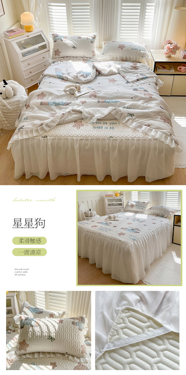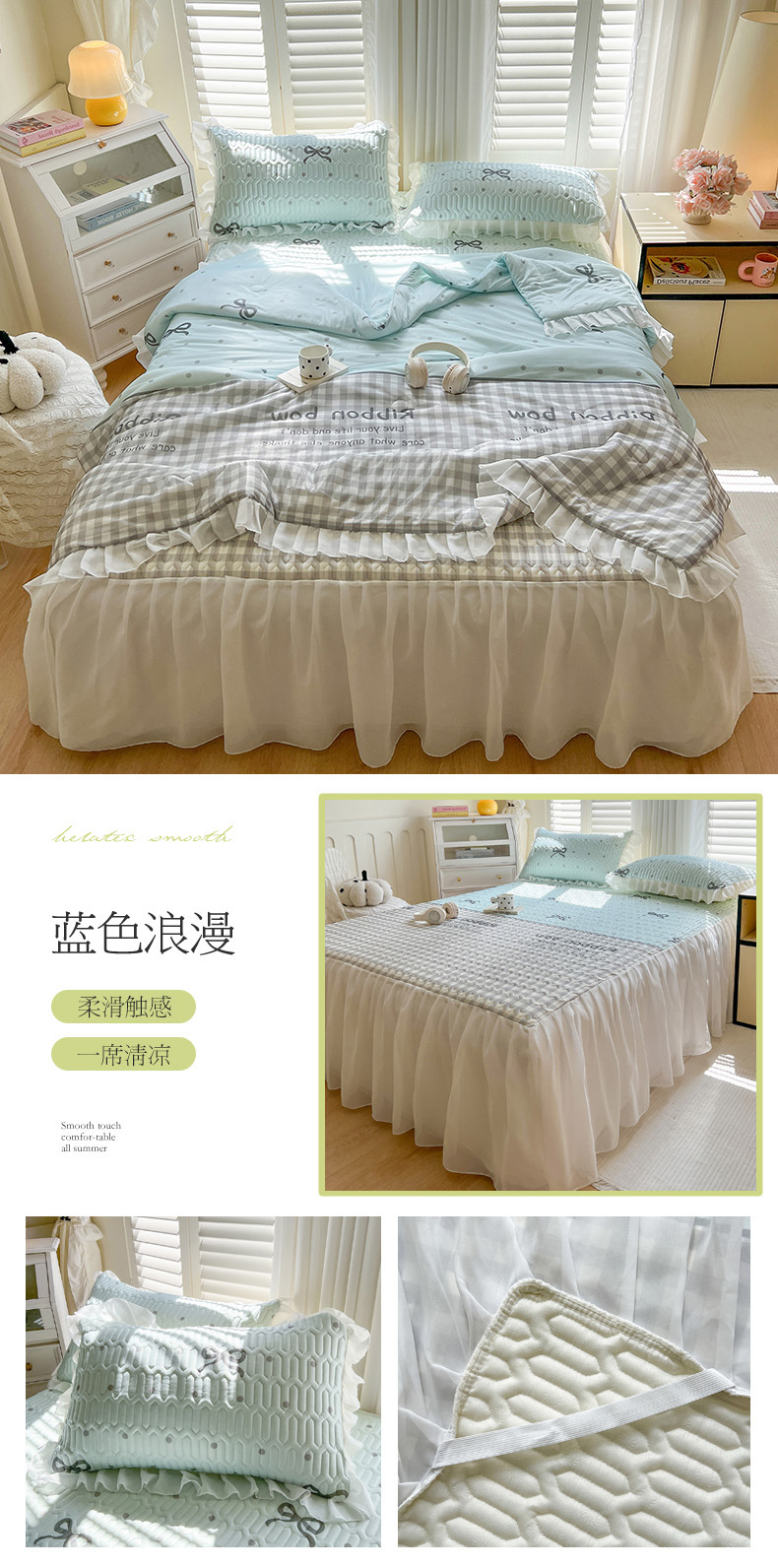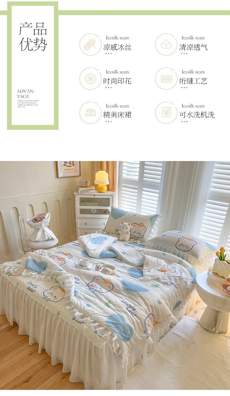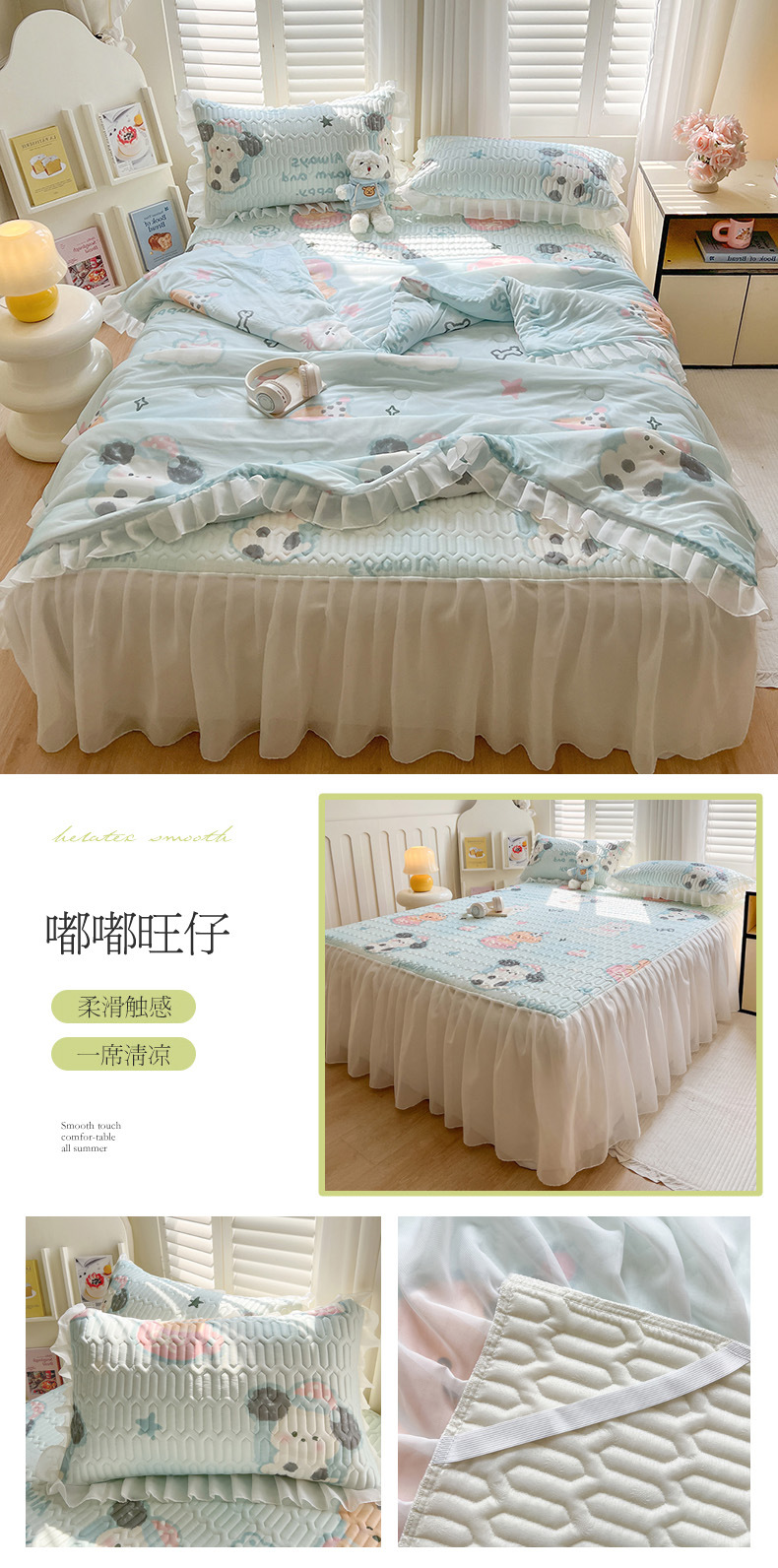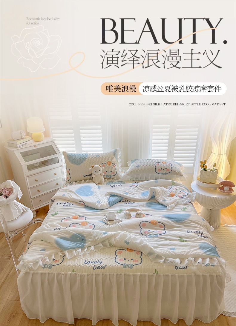여름 엣지링 신형 A급 프린트 두꺼워진 시원한 아이스 실크 침대 시트 라텍스 매트 3~4종 세트 세탁기 사용 가능