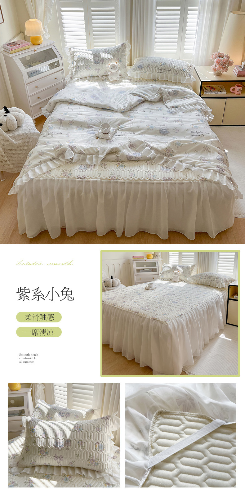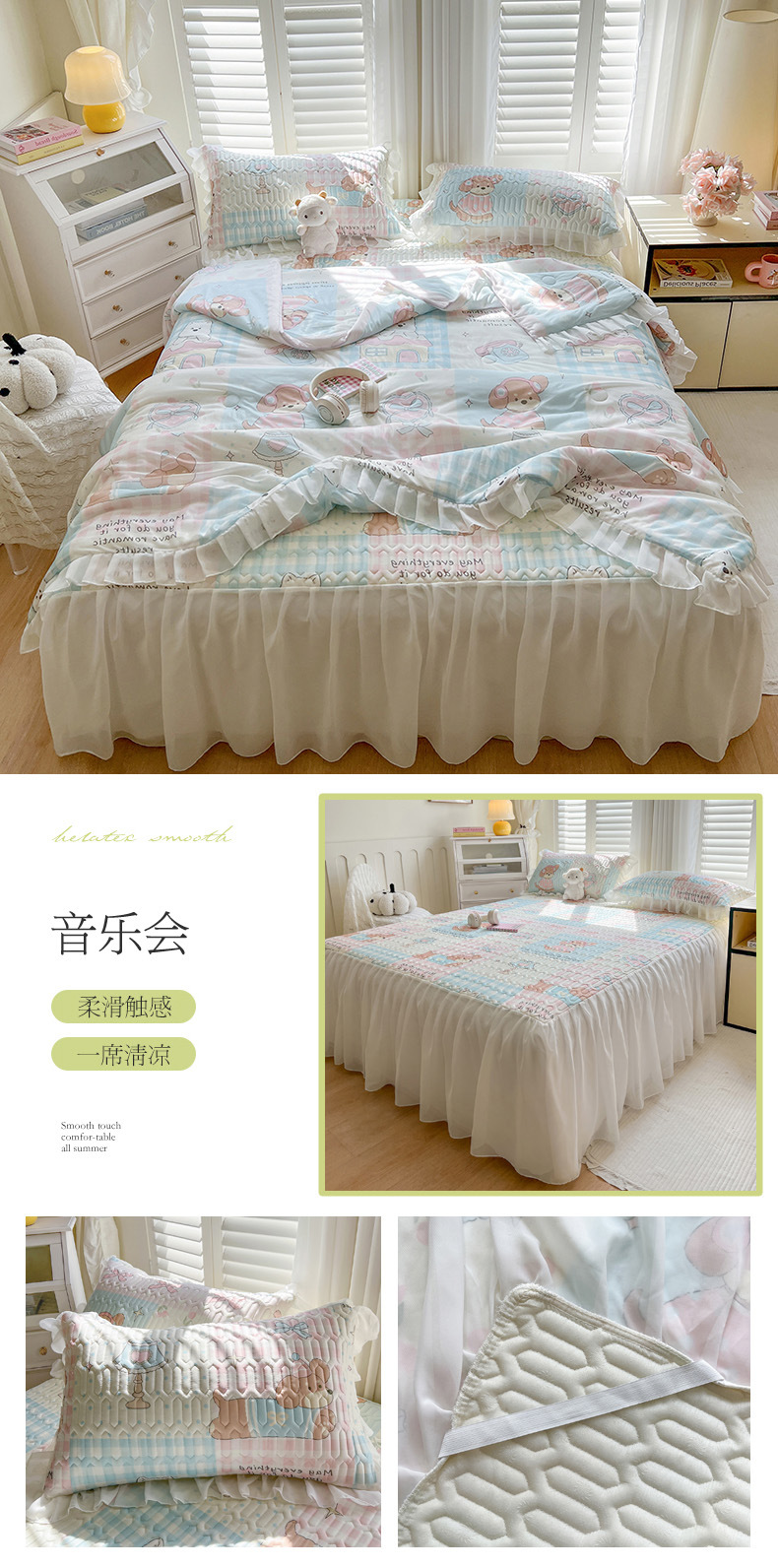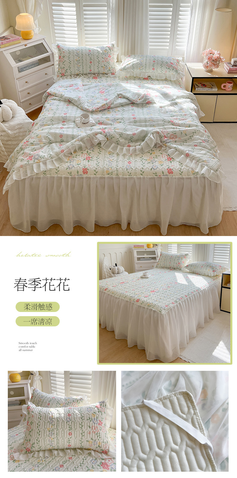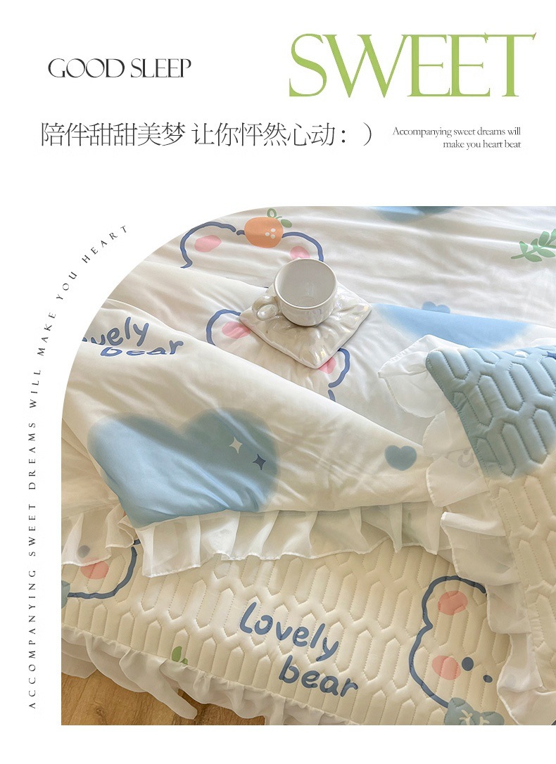 여름 엣지링 신형 A급 프린트 두꺼워진 시원한 아이스 실크 침대 시트 라텍스 매트 3~4종 세트 세탁기 사용 가능