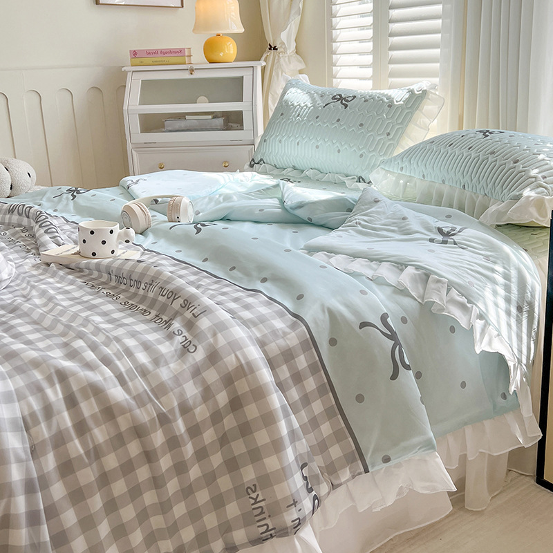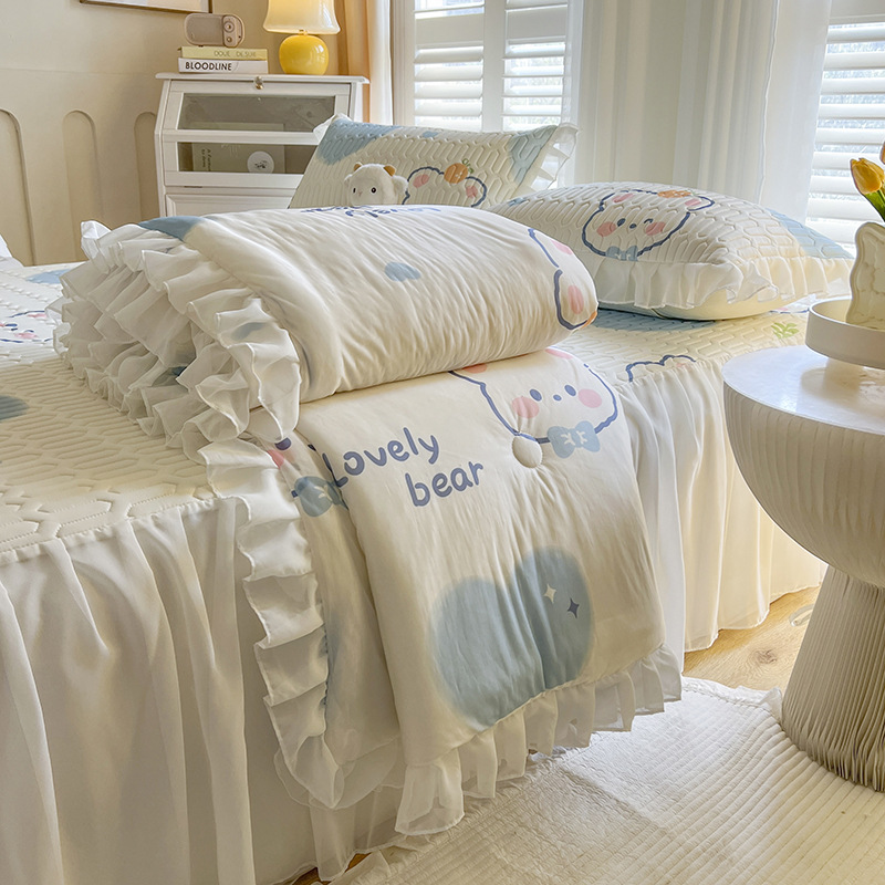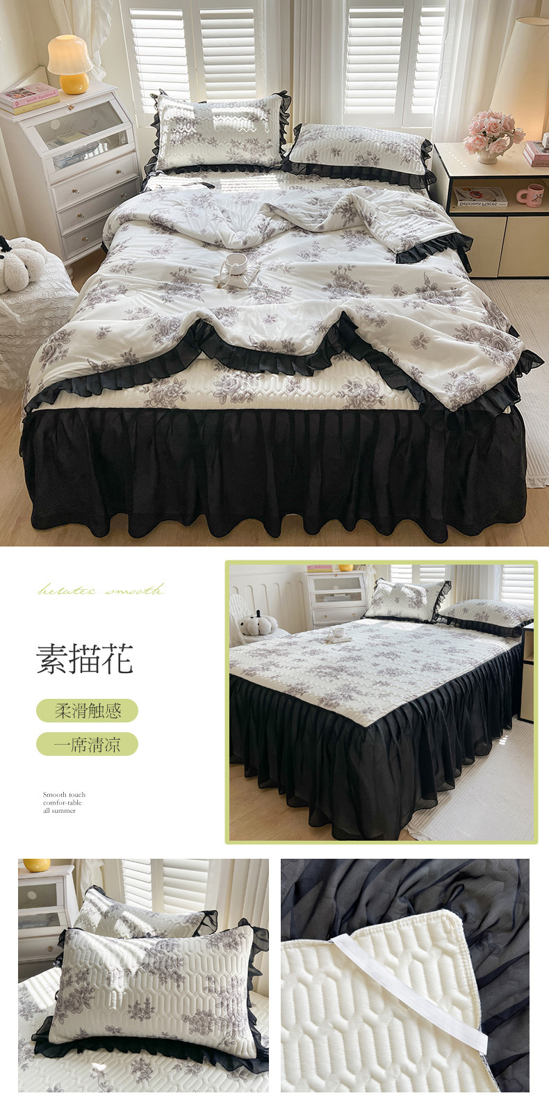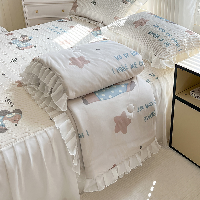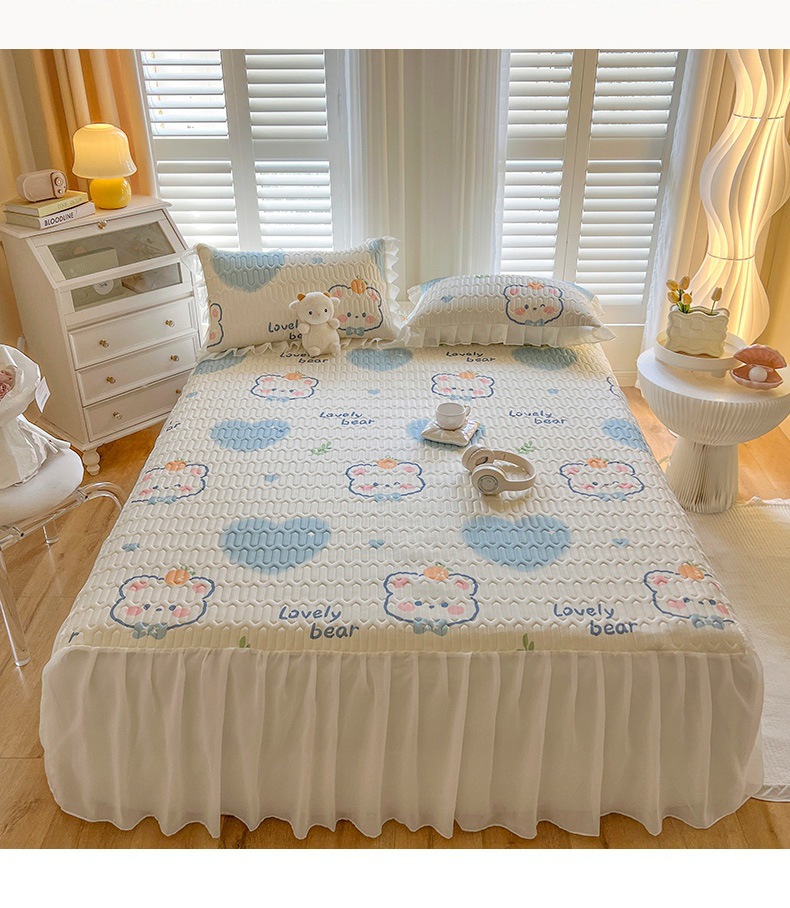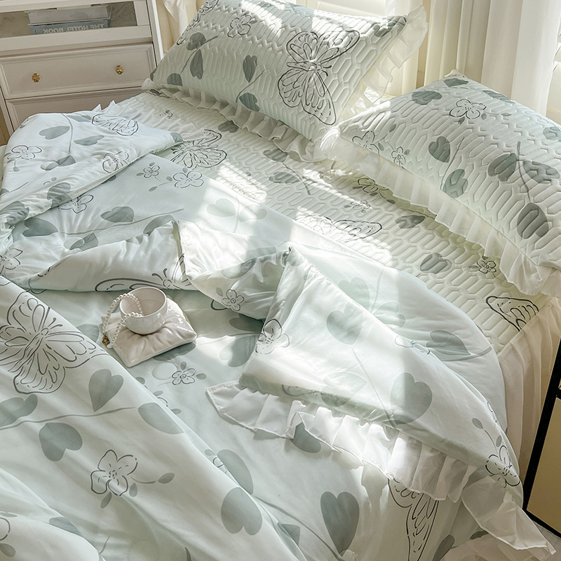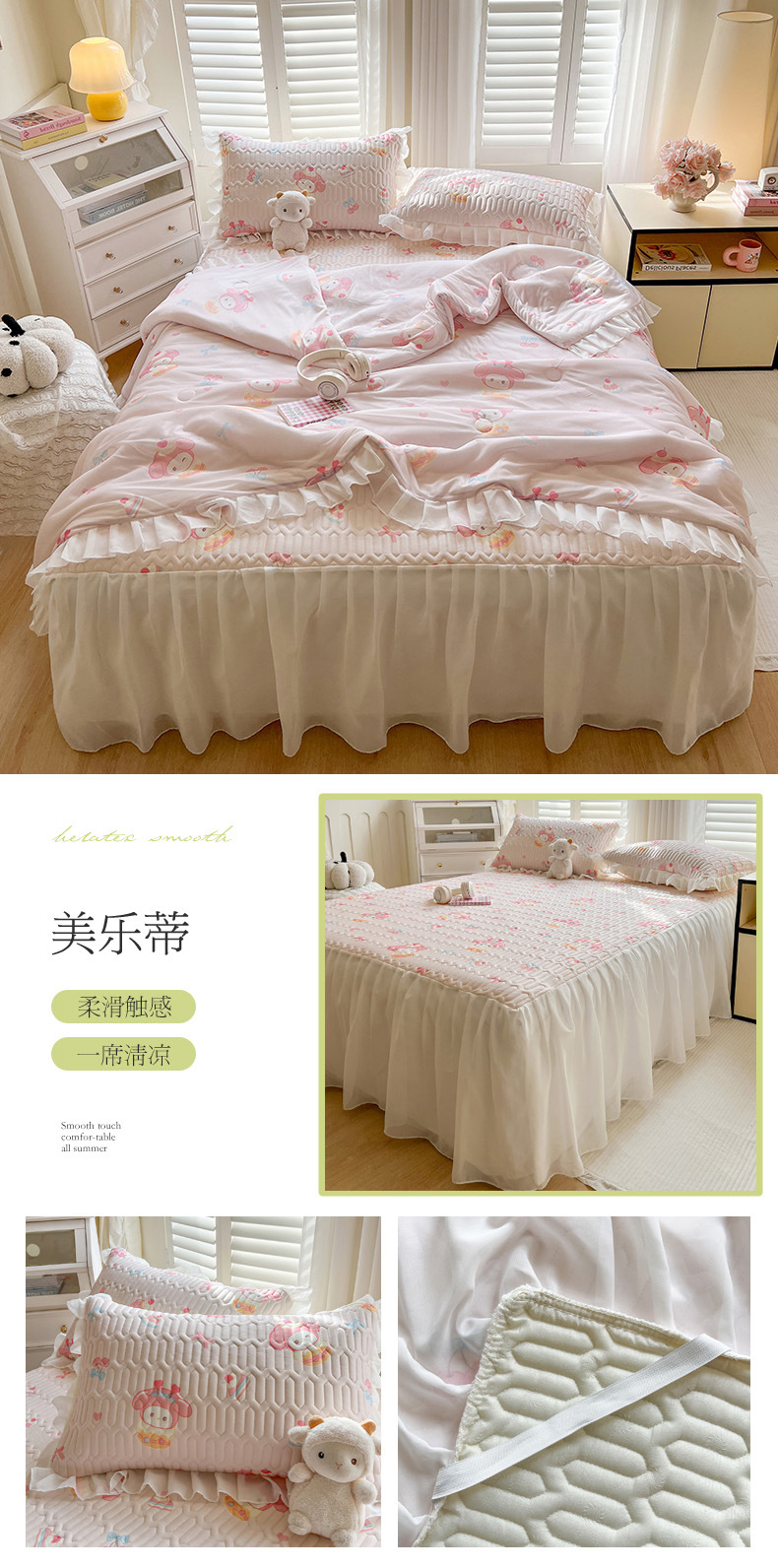 여름 엣지링 신형 A급 프린트 두꺼워진 시원한 아이스 실크 침대 시트 라텍스 매트 3~4종 세트 세탁기 사용 가능
