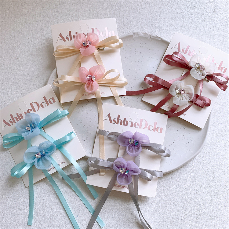 새로운 어린이 거즈 플라워 활 리본 헤어핀 달콤한 소녀의 사이드 부러진 헤어 뱅이 헤어핀 헤드웨어
