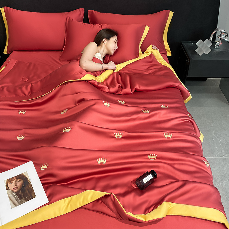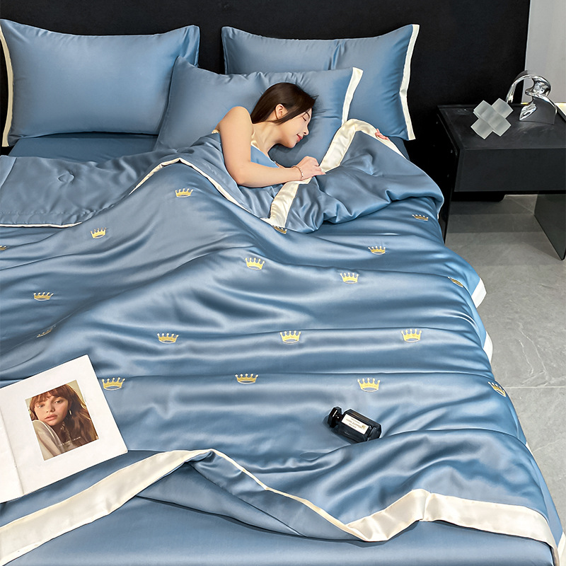 폭발 씻은 얼음 실크 여름 이불 4 조각 기계 세탁 가능한 여름 이불 실키 나체 수면 자수 여름 이불 선물 도매