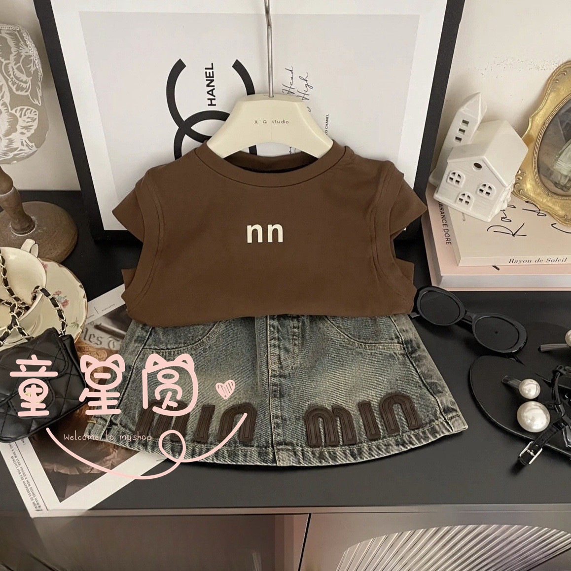 Tongxingyuan 아기 소녀 여름 새로운 한국어 스타일 Maillard 편지 조끼 데님 스커트 소녀 정장 트렌드스토어 가기