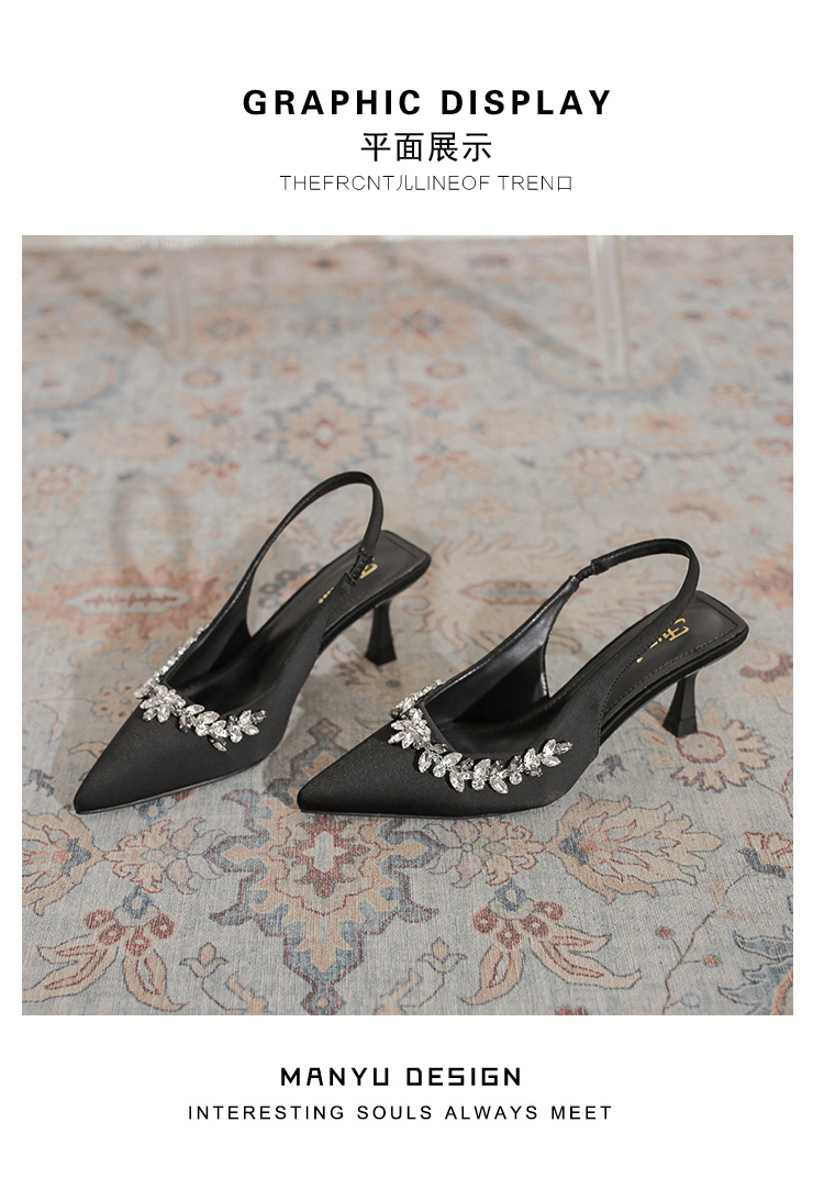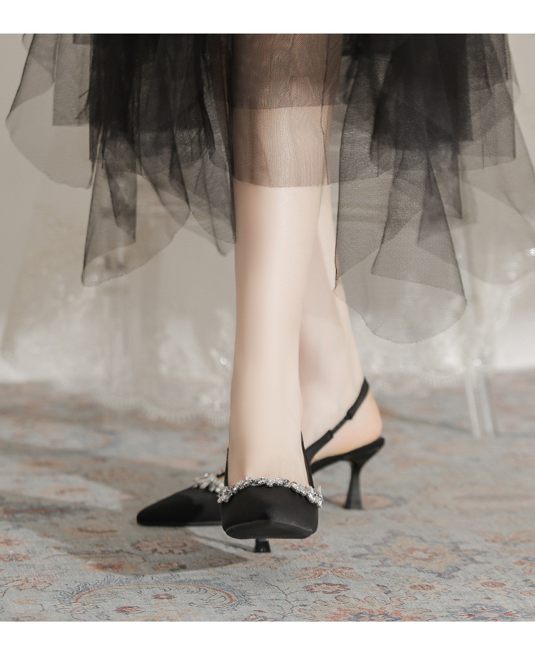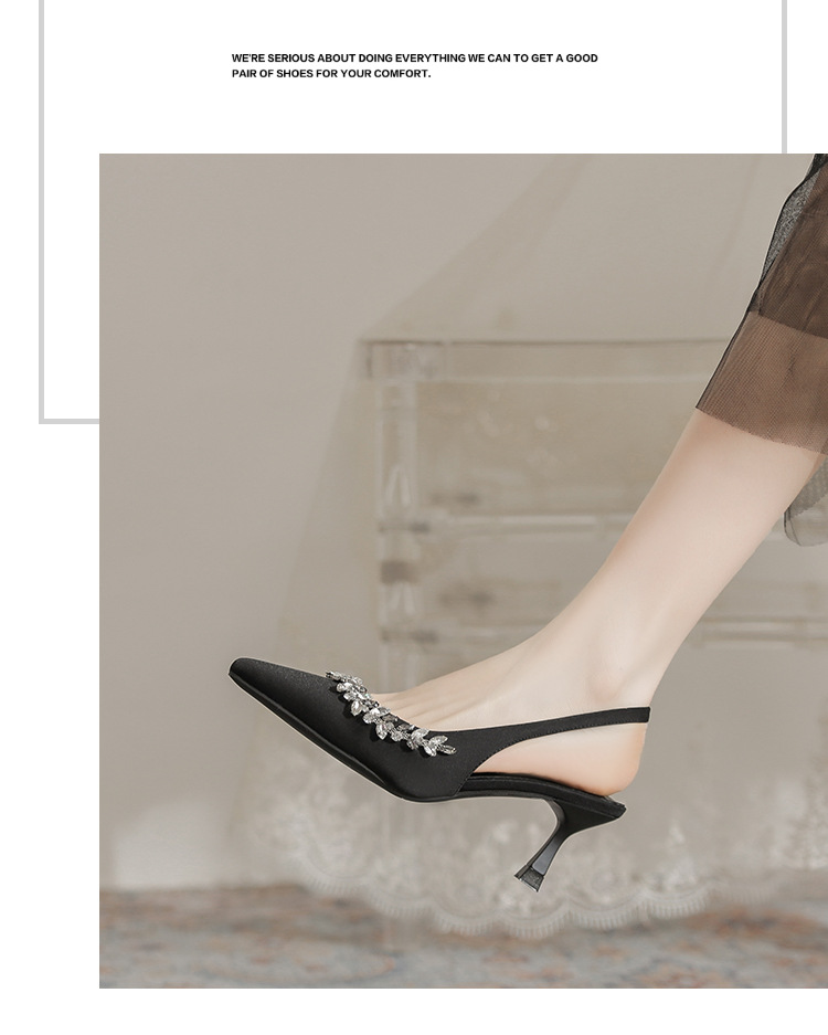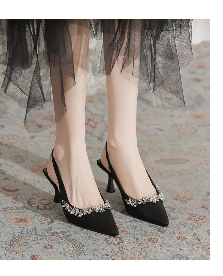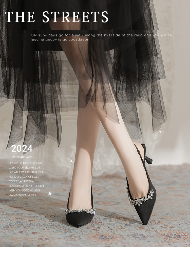 2263-15 샌들 여성 봄/여름 2024 새로운 하이힐 스틸레토 뾰족한 라인 석 프랑스 기질 싱글 슈즈스토어 가기