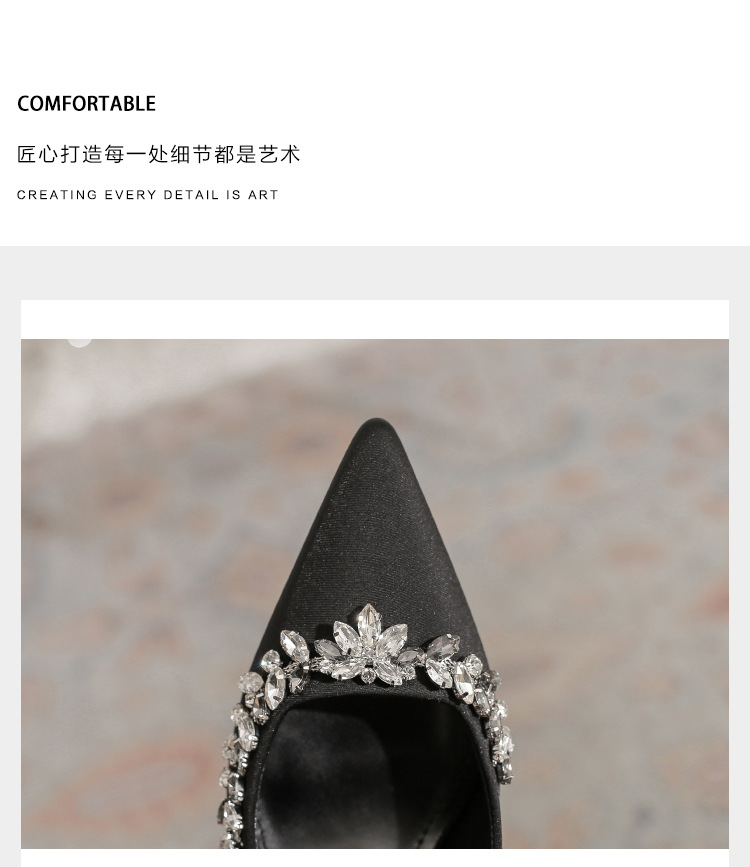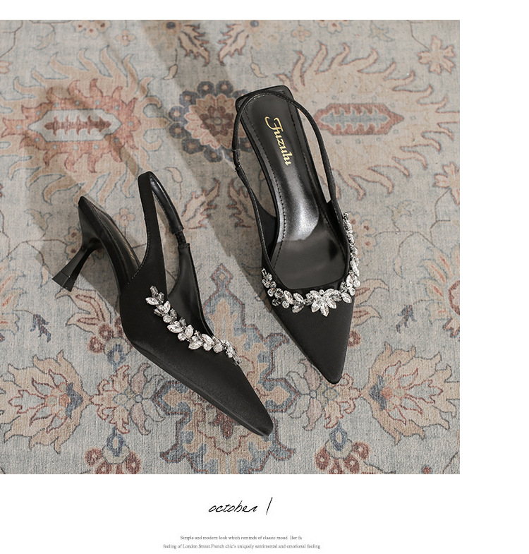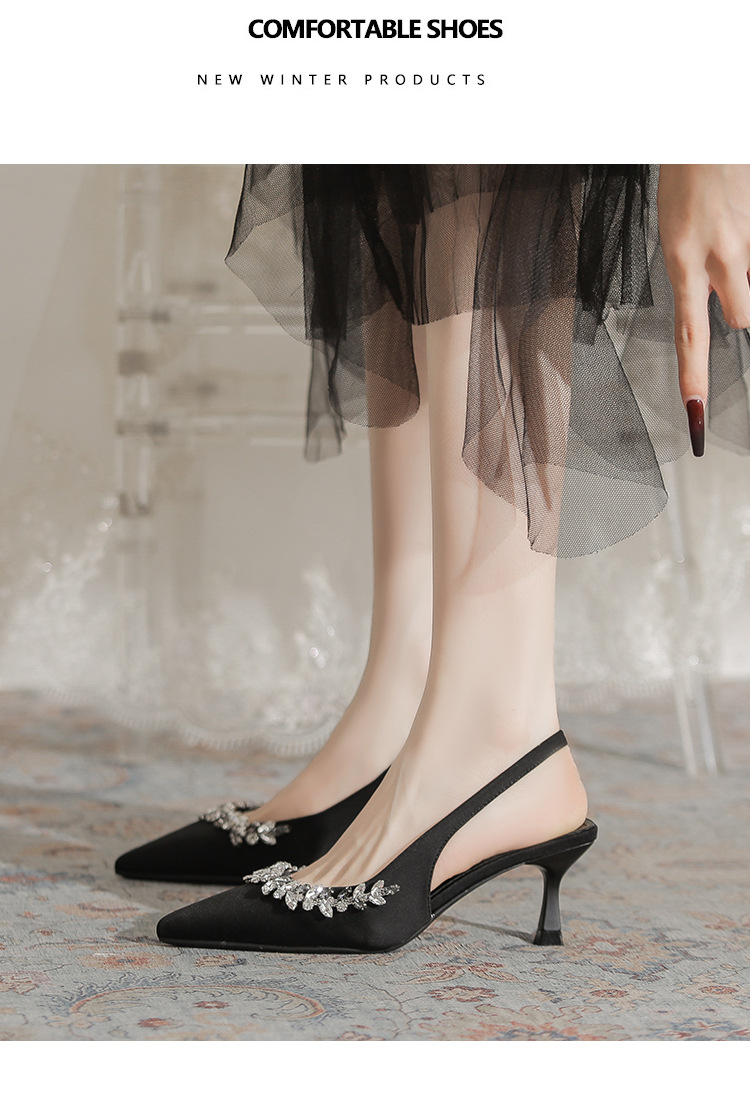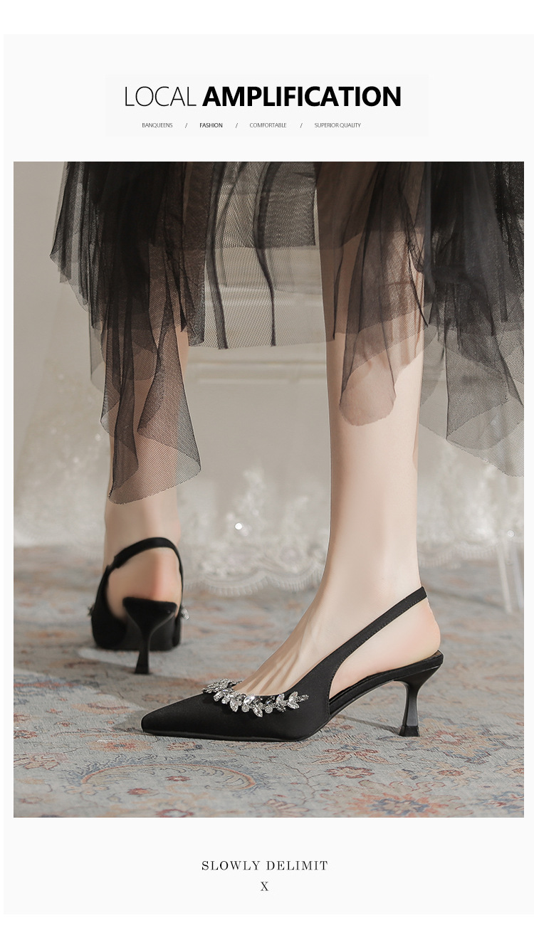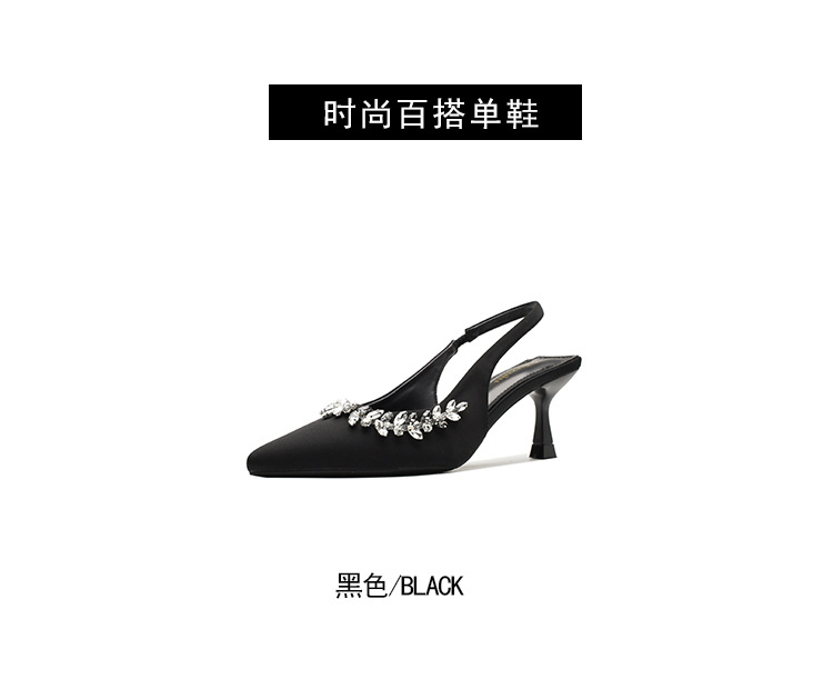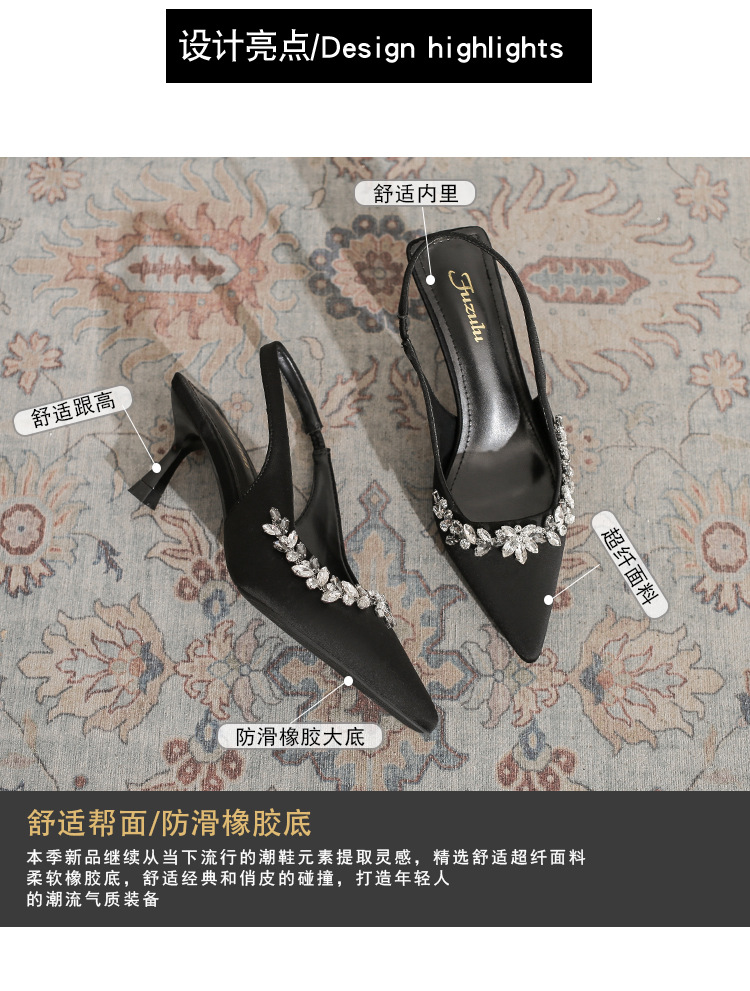 2263-15 샌들 여성 봄/여름 2024 새로운 하이힐 스틸레토 뾰족한 라인 석 프랑스 기질 싱글 슈즈스토어 가기
