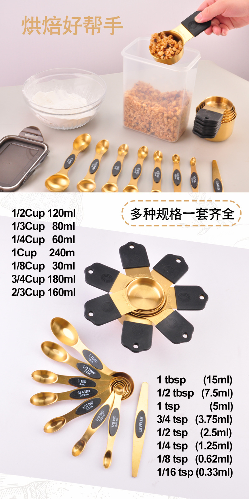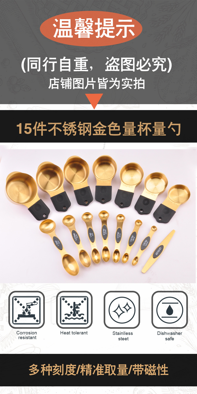 국경 간 금도금 304 스테인레스 스틸 측정 컵 측정 숟가락 세트 베이킹 도구 측정 숟가락 측정 숟가락 15 개 세트