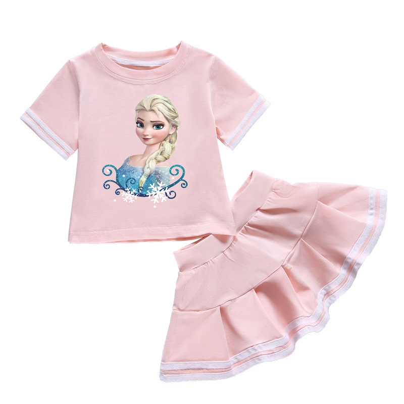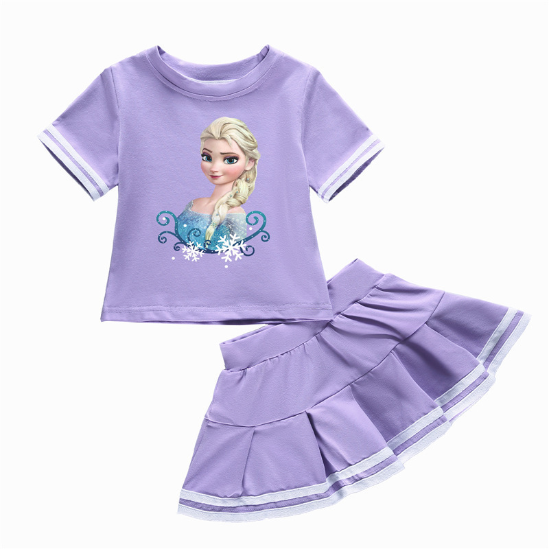 여름 여자 티셔츠 치마 세트 코튼 학생 학교 유니폼 캐주얼 어린이 스포츠 세트 아이스 프린세스 아동복 얇은스토어 가기