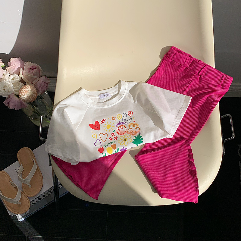 어린이 반팔 여성 세트 여름 바지 바지 소녀 인쇄 만화 얇은 티셔츠 아기 반팔