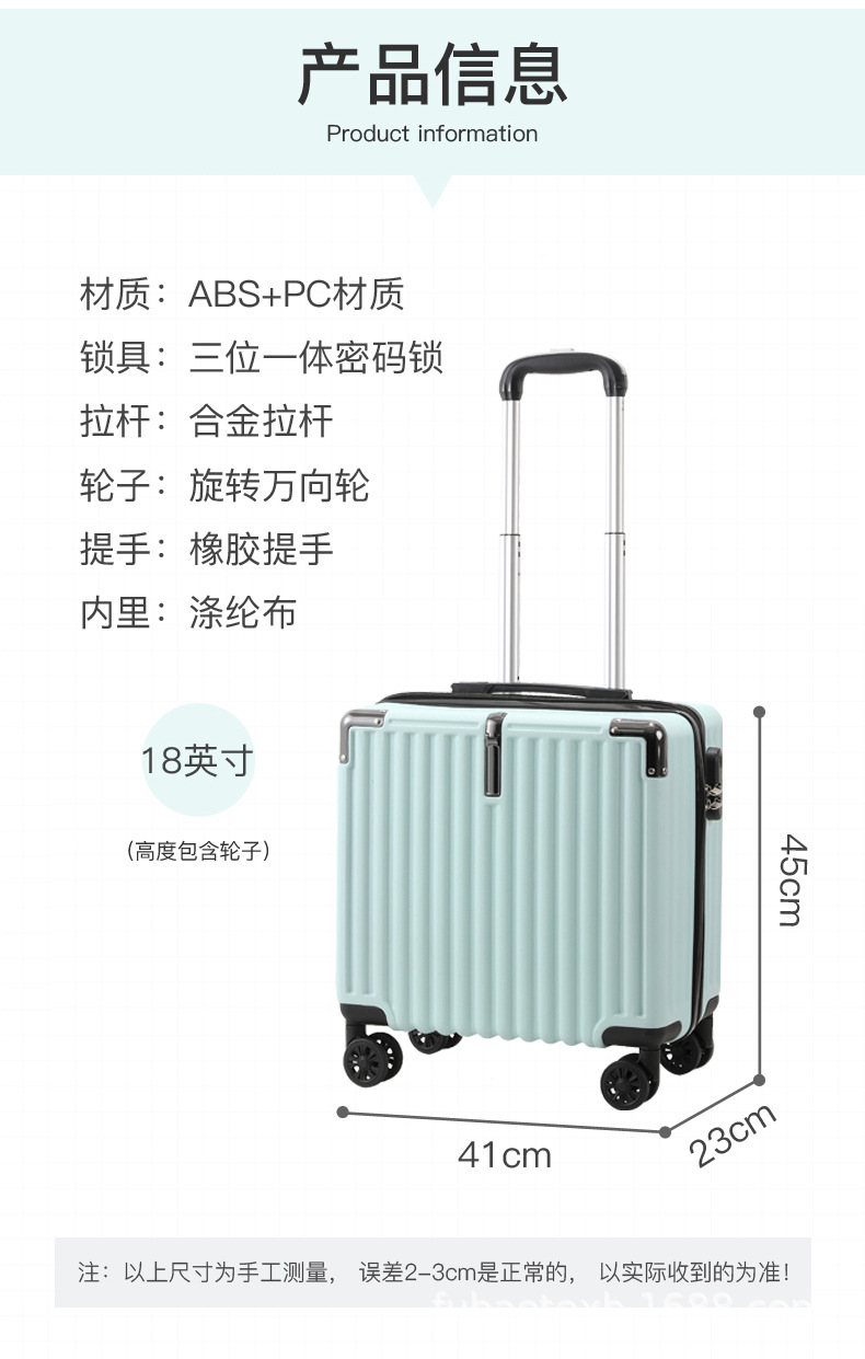 작은 수하물 케이스 여성 남성 2023 새로운 18 인치 휴대용 탑승 암호 상자 학생 여행 트롤리 케이스 가죽 케이스스토어 가기