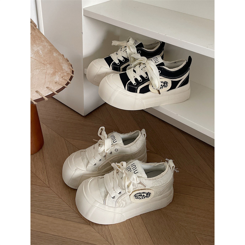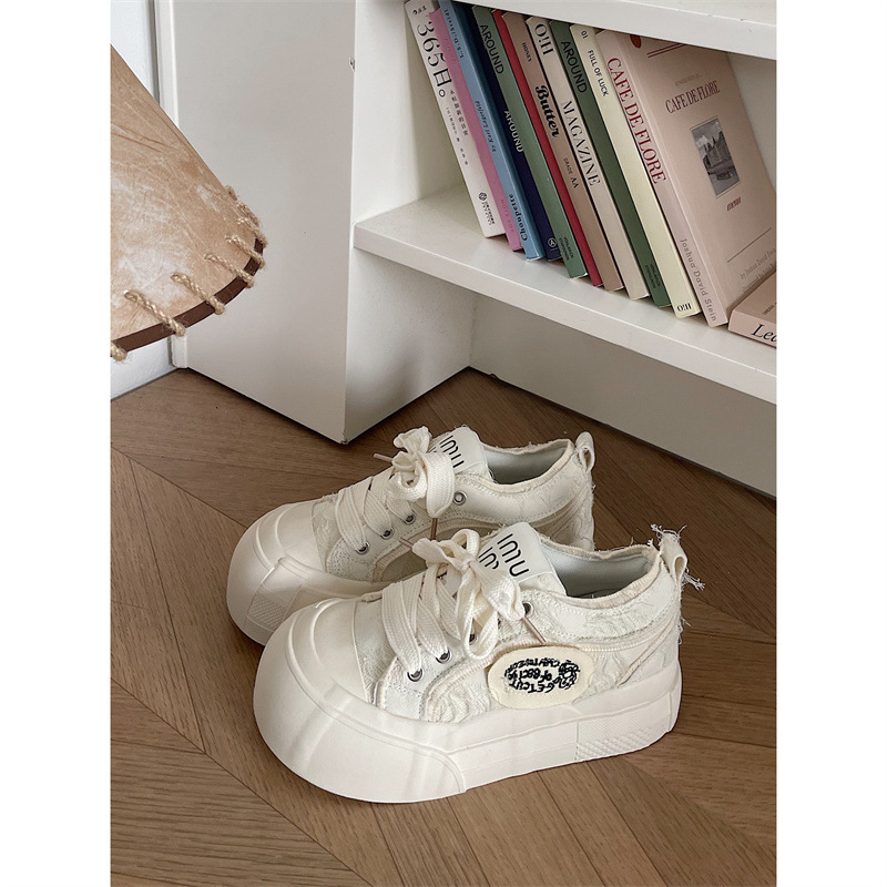 두꺼운 밑창 작은 흰색 신발 여성의 2024 봄 새로운 온라인 인기 인기 올 매치 증가 틈새 학생 통기성 캐주얼 신발스토어 가기