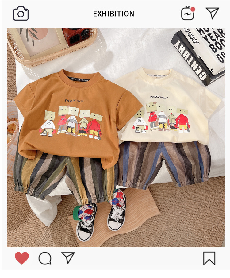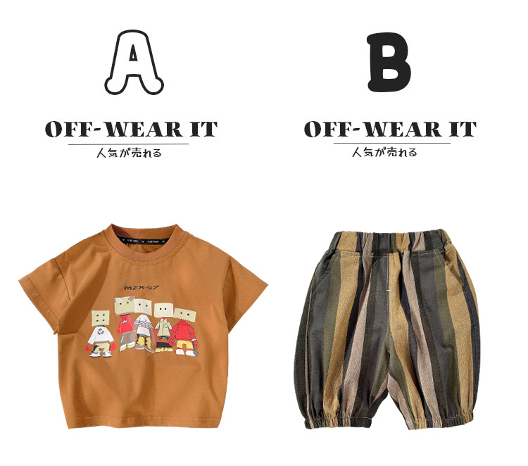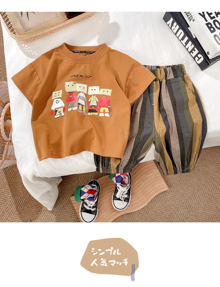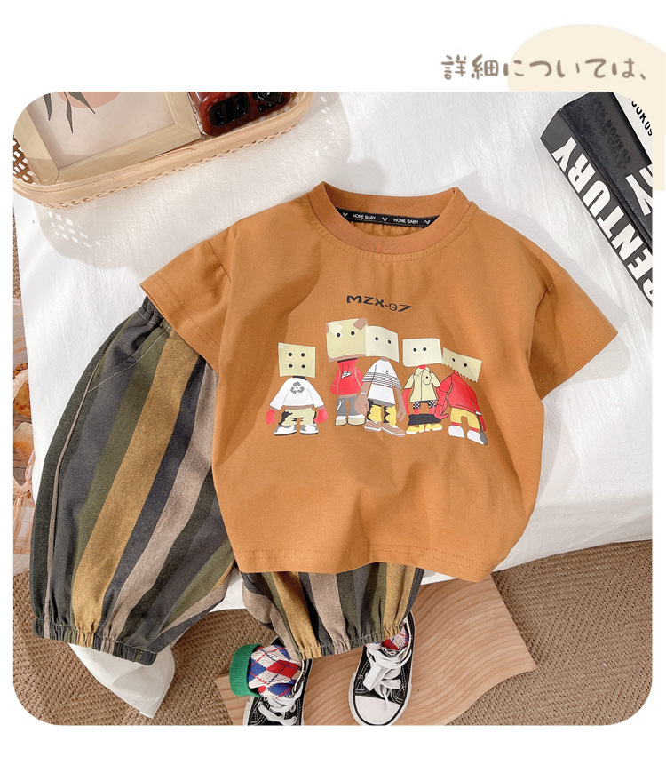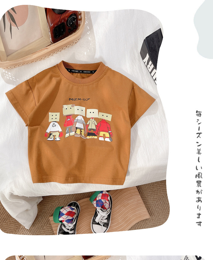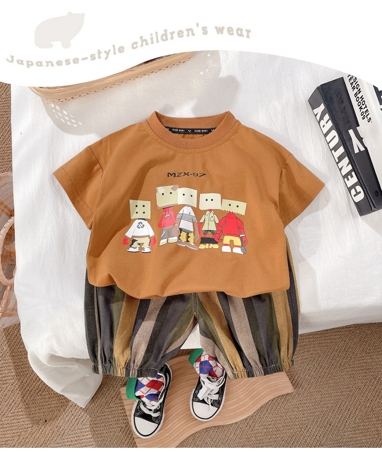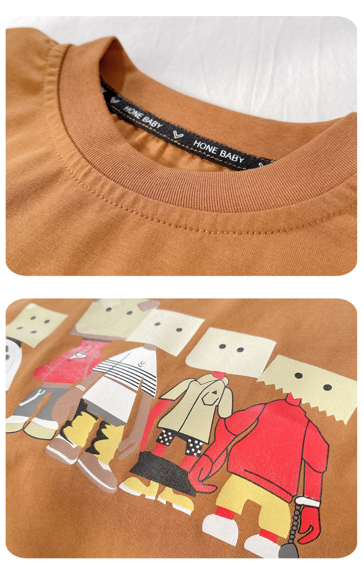 소년 반팔 티셔츠 여름 소녀 로봇 진한 베이지 컬러 하프 소매 얇은 상단 어린이 세트 도매스토어 가기