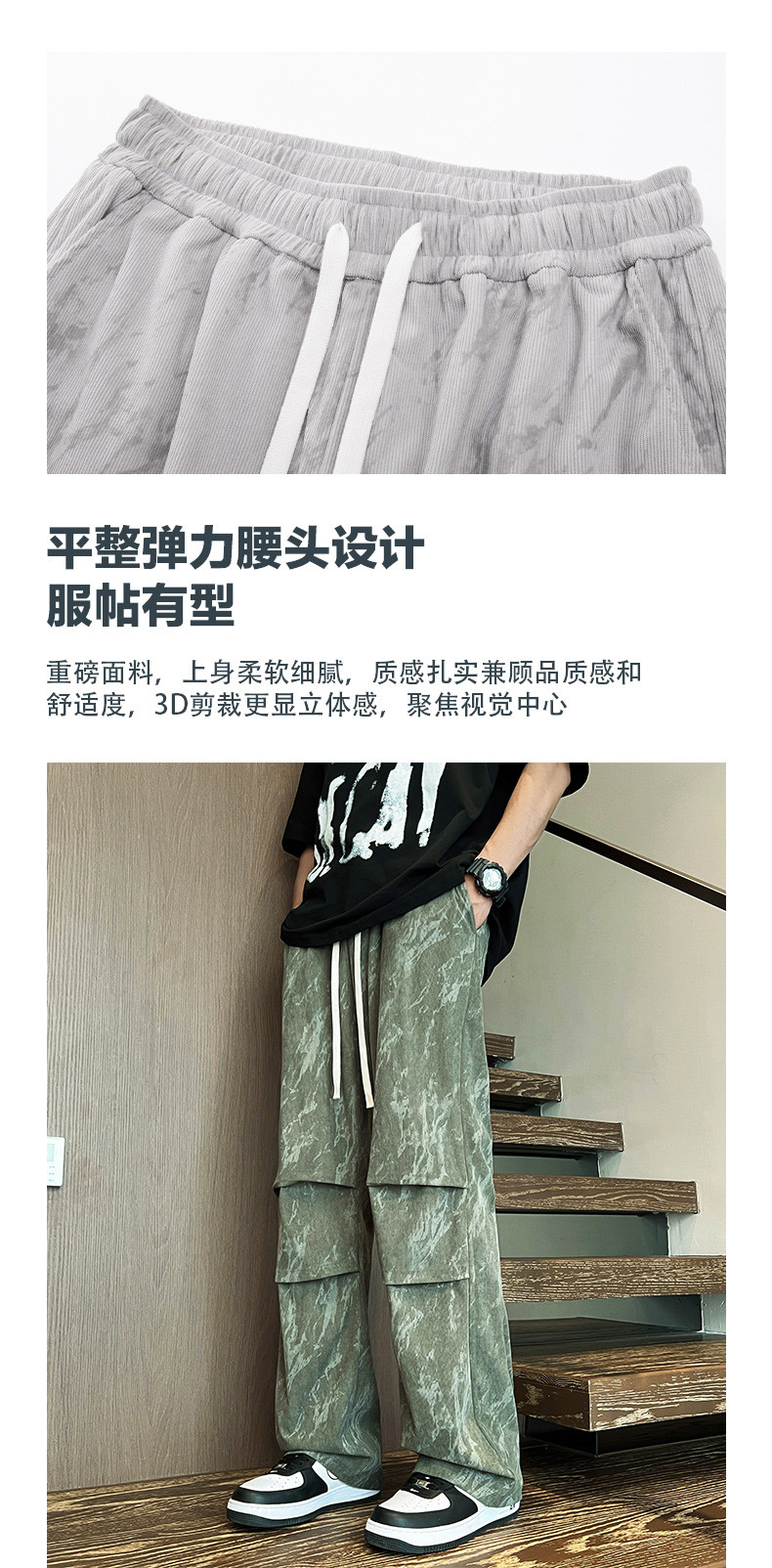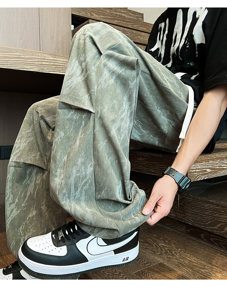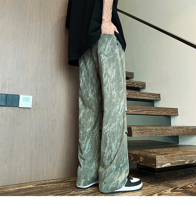 여름 포트 패션 남성 위장 캐주얼 툴링 바지 통통한 남성 엑스트라 플러스 사이즈 느슨한 접이식 플레어 바지