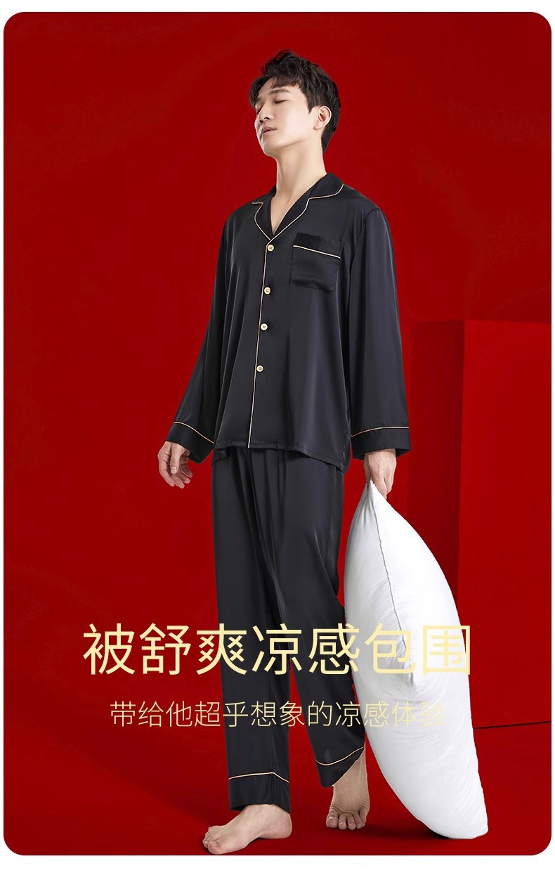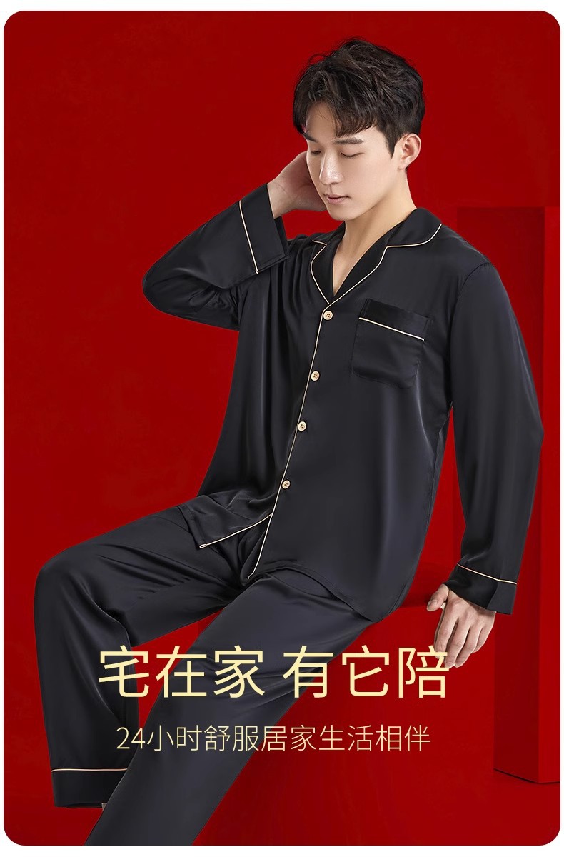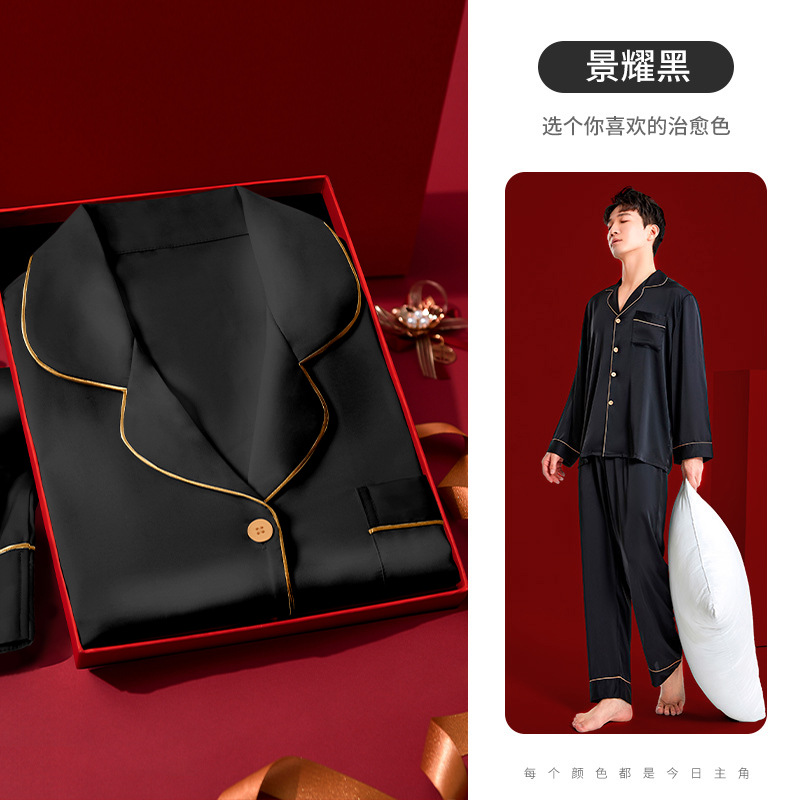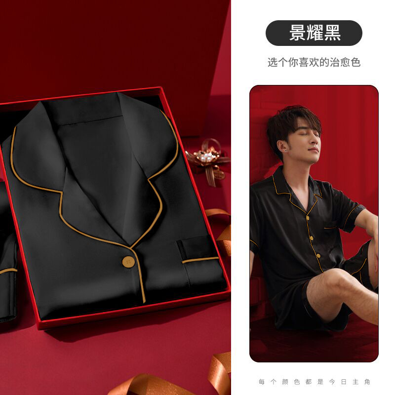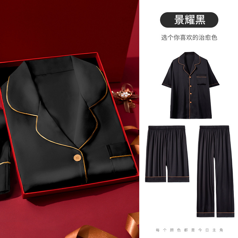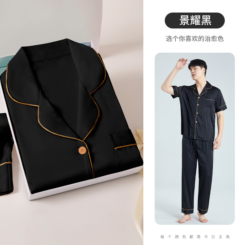 블랙 하이 엔드 아이스 실크 잠옷 남자의 봄과 여름 단색 느슨한 홈 옷은 남자 친구를위한 하이 엔드 선물을 착용 할 수 있습니다스토어 가기