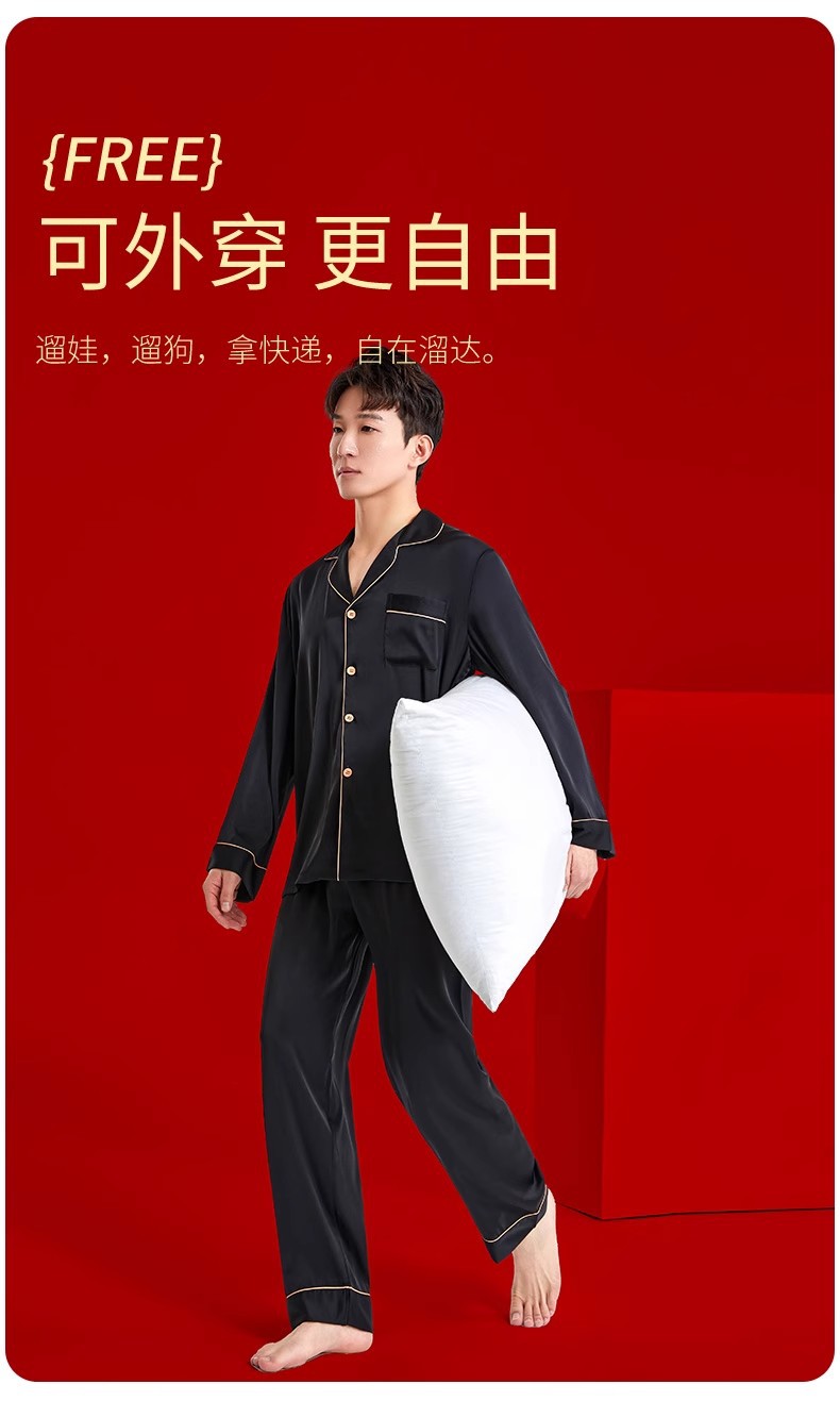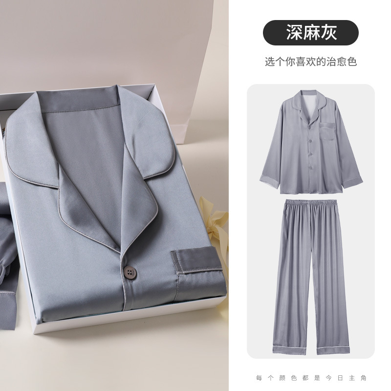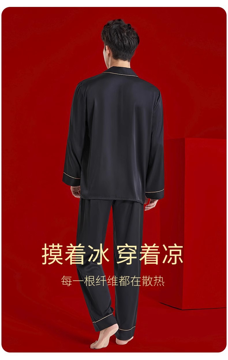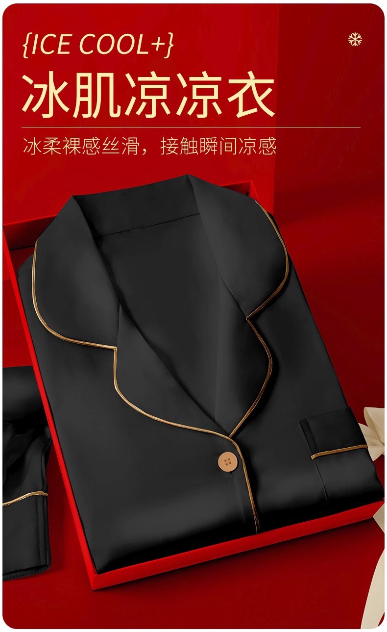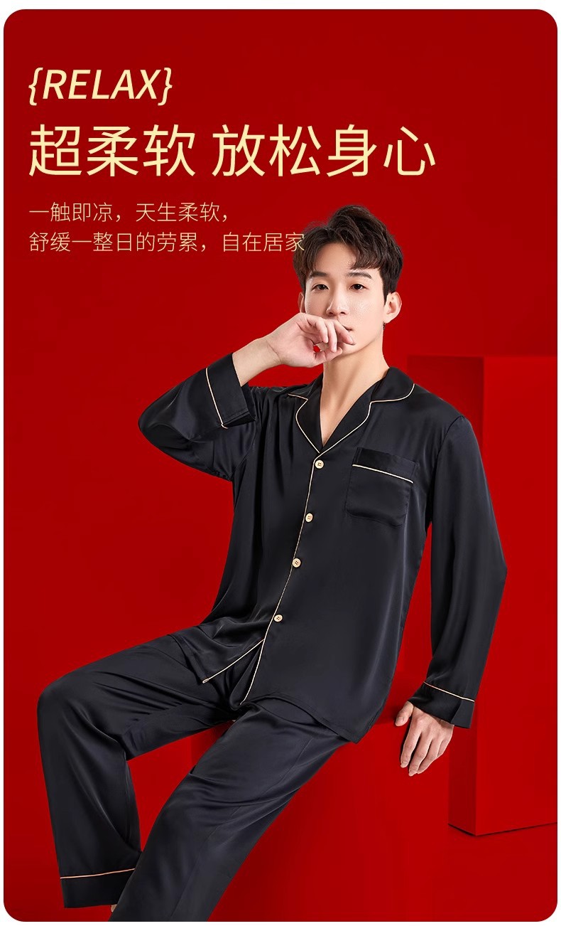 블랙 하이 엔드 아이스 실크 잠옷 남자의 봄과 여름 단색 느슨한 홈 옷은 남자 친구를위한 하이 엔드 선물을 착용 할 수 있습니다스토어 가기