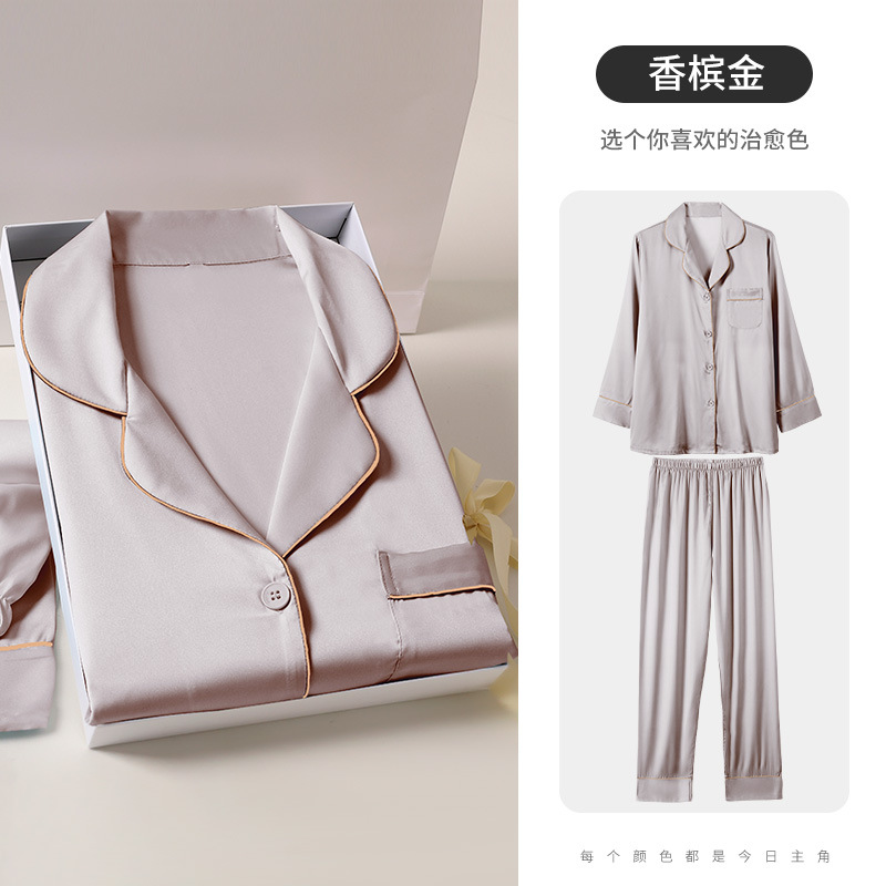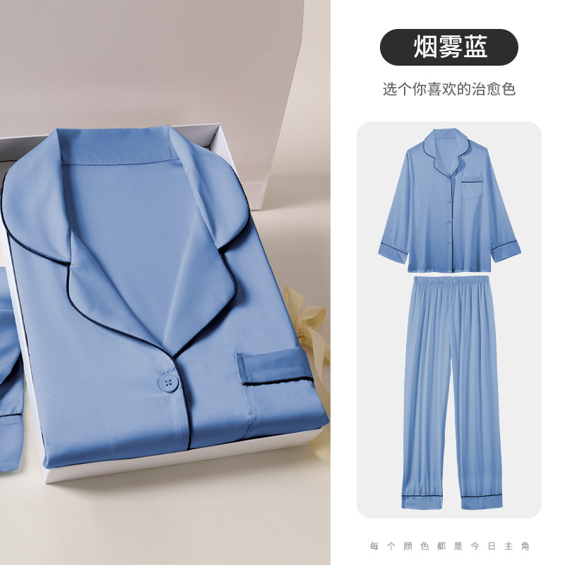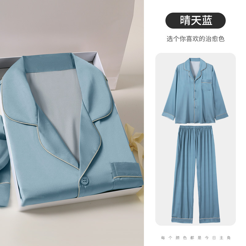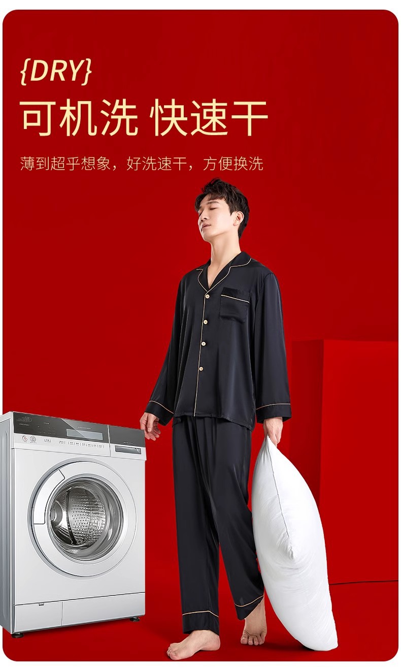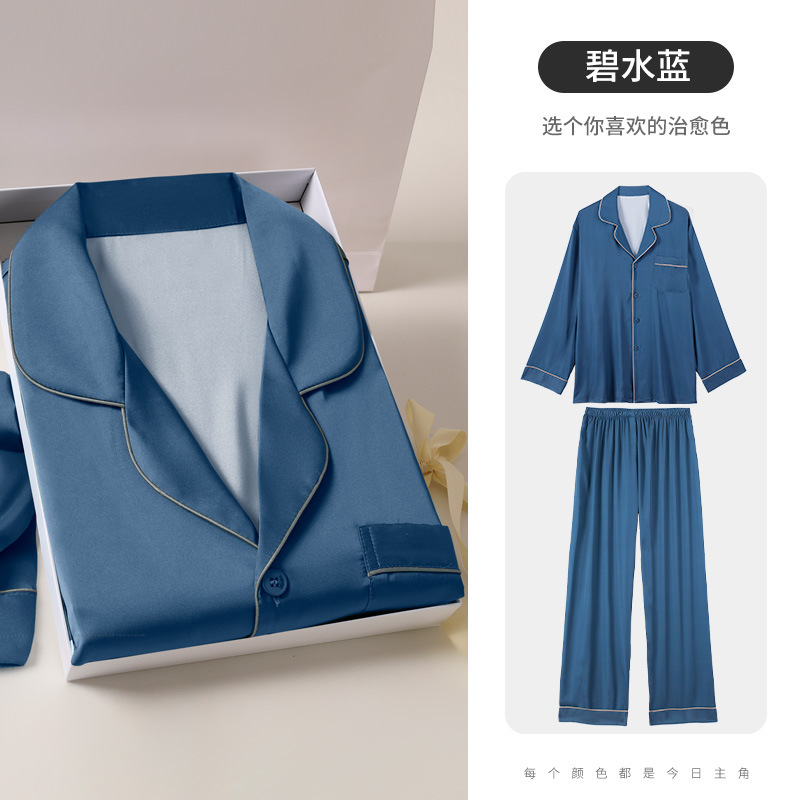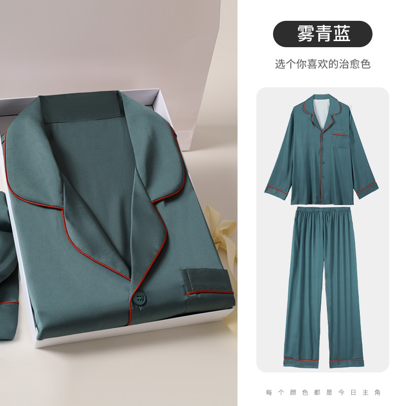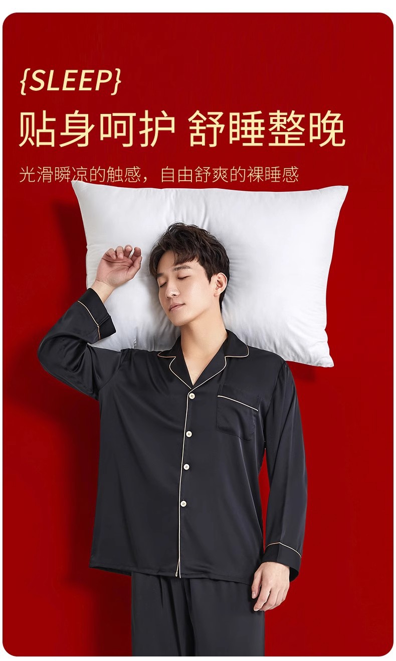 블랙 하이 엔드 아이스 실크 잠옷 남자의 봄과 여름 단색 느슨한 홈 옷은 남자 친구를위한 하이 엔드 선물을 착용 할 수 있습니다스토어 가기