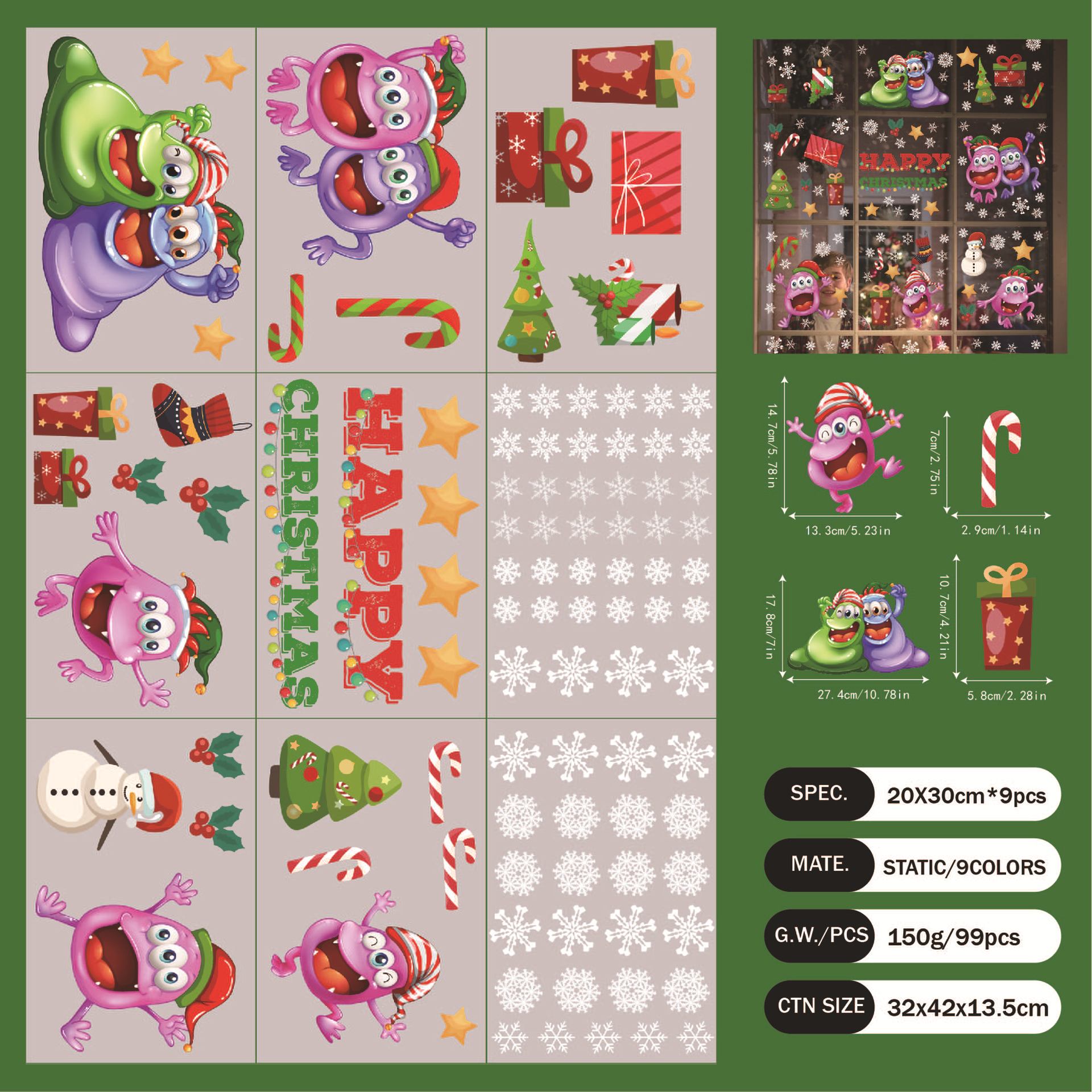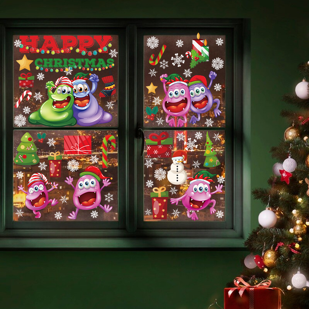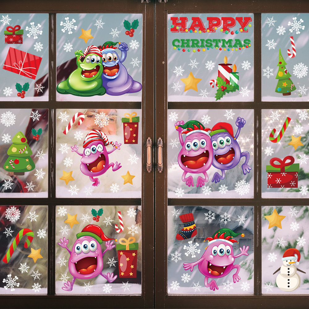 Yiyao DD2410 국경 크리스마스 몬스터 유리 스티커 방수 분위기 장식 창 움직일 수있는 정전기 스티커