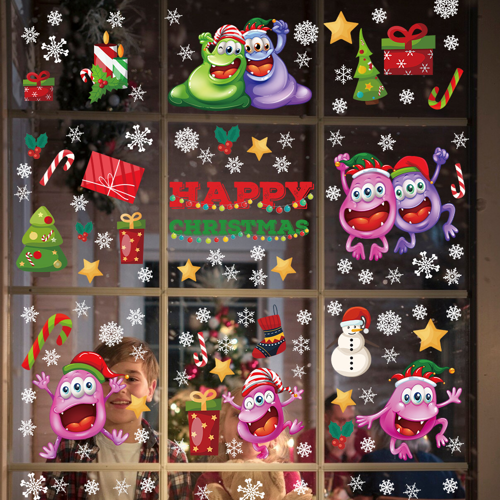 Yiyao DD2410 국경 크리스마스 몬스터 유리 스티커 방수 분위기 장식 창 움직일 수있는 정전기 스티커스토어 가기