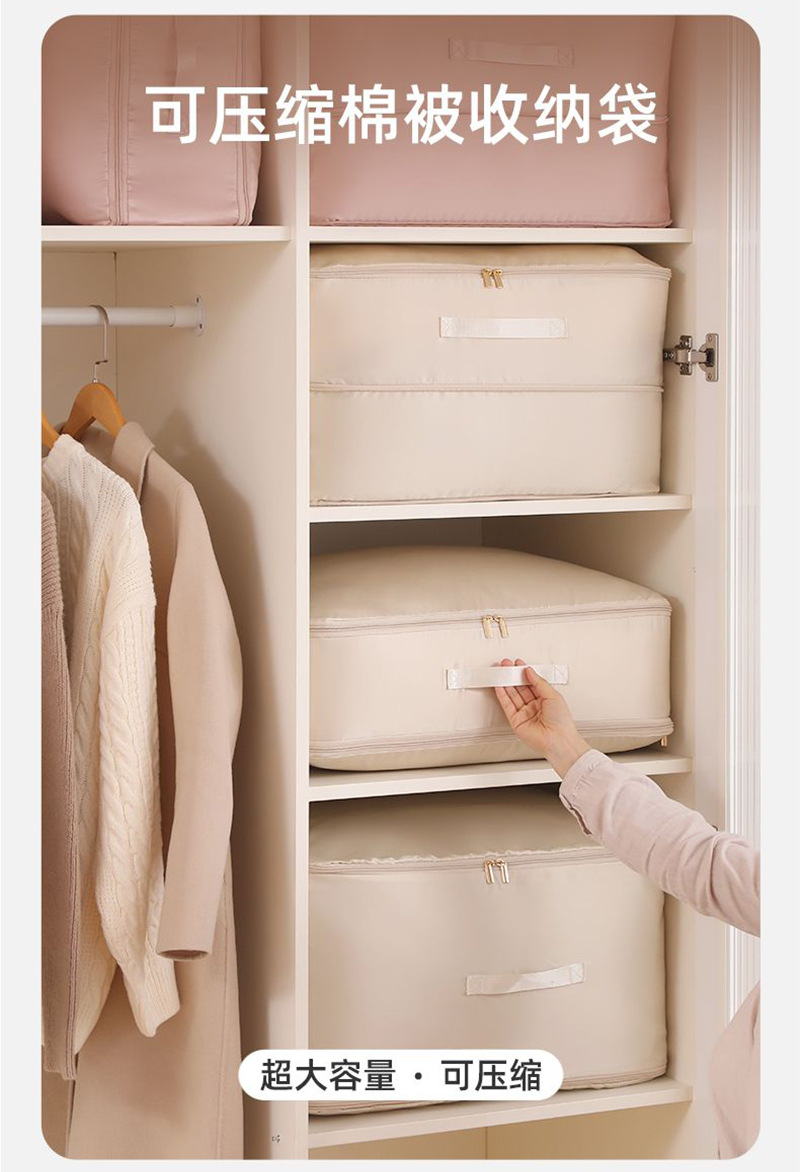• 베이지 다운 재킷 압축 보관 가방 40*30*18 [메모리 천 초대형]]