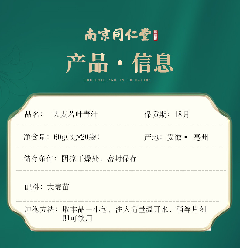 난징 Tongrentang 보리 Ruoye 그린 주스 그린 골드 홈 솔리드 음료 대체 그린 주스 파우더 공장 도매 대체스토어 가기