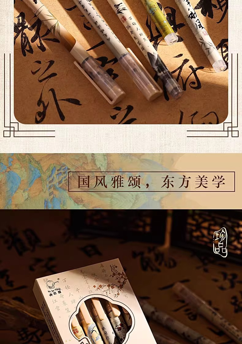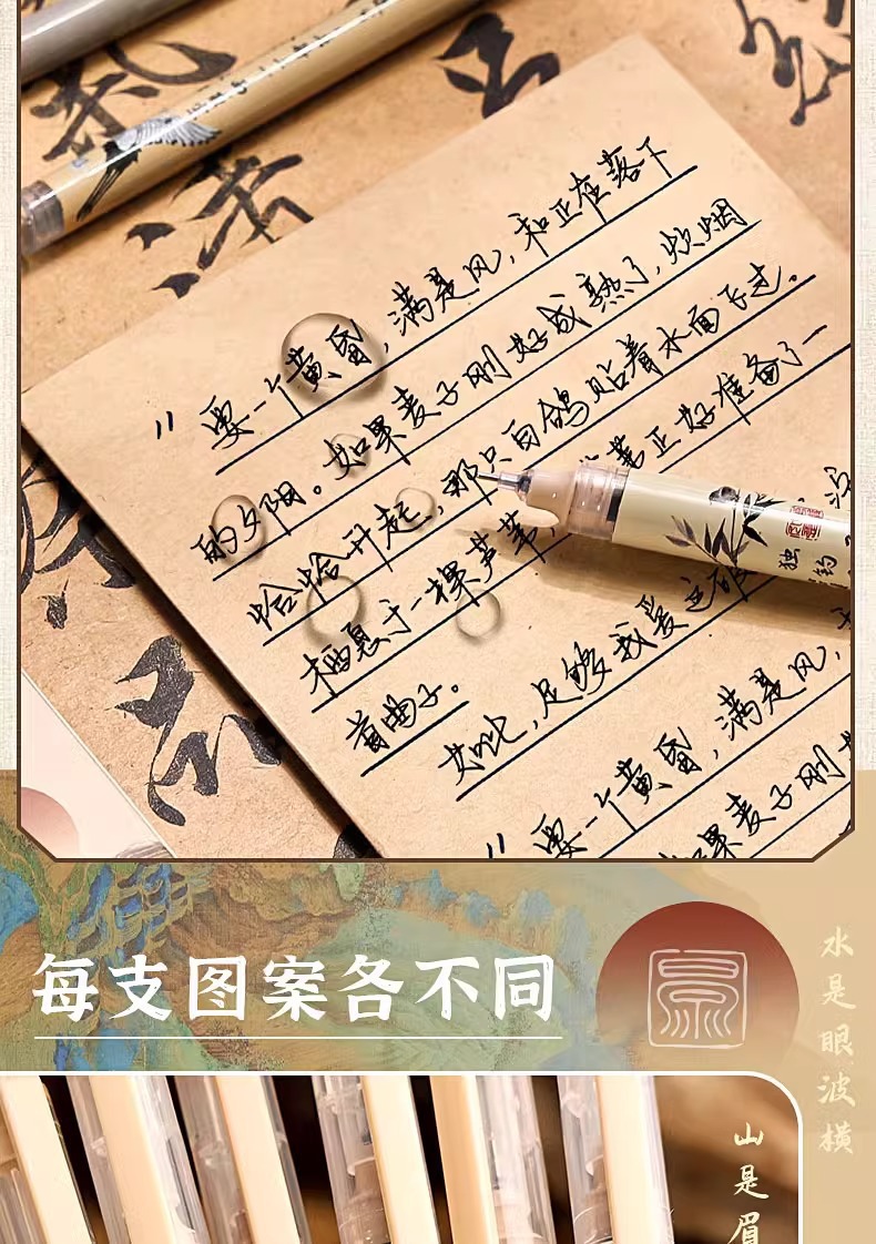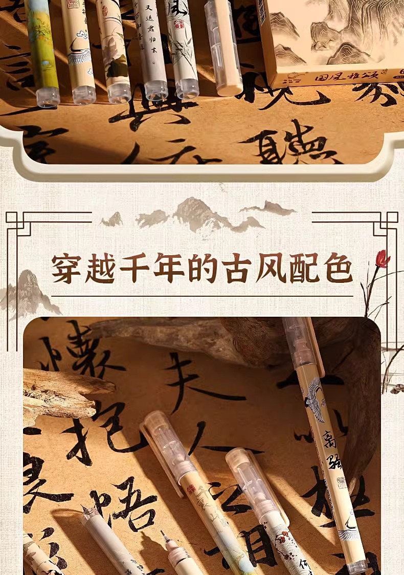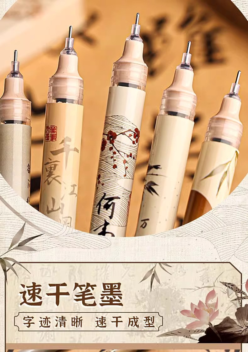 Guochao 워킹 비드 스트레이트 액체 젤 펜 시그니처 펜 학생 답변 브러시 블랙 볼펜 Guofeng 하이 컬러 값 블랙 펜