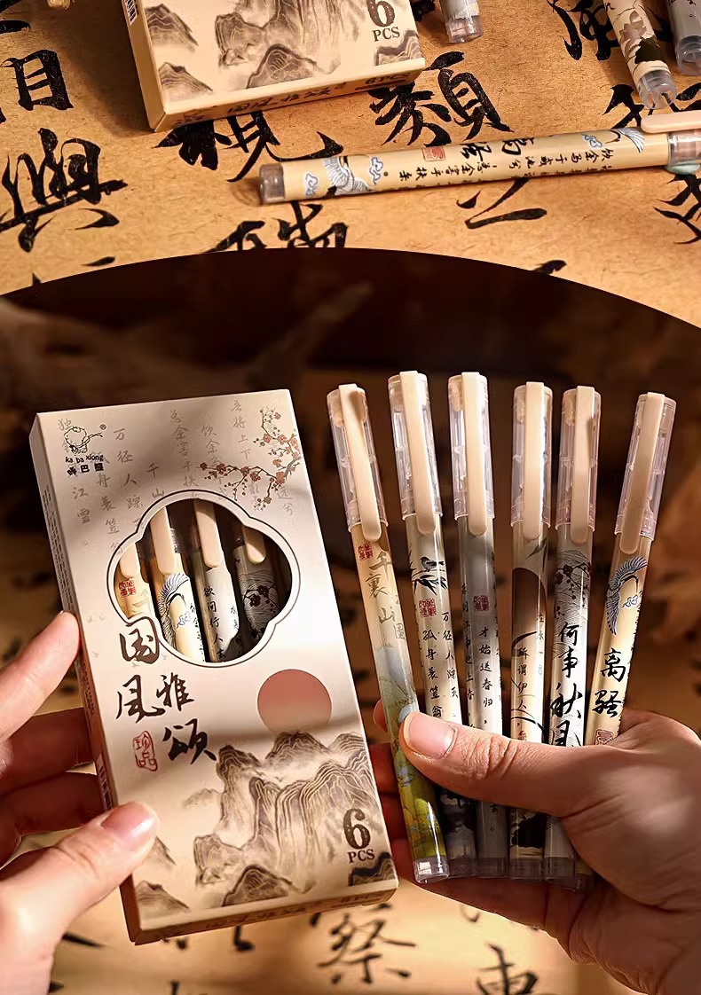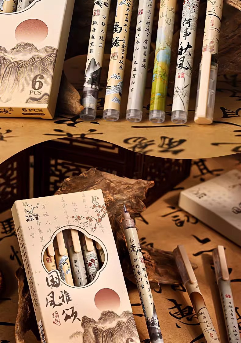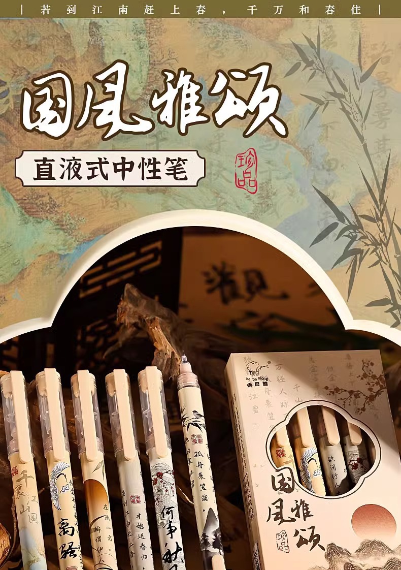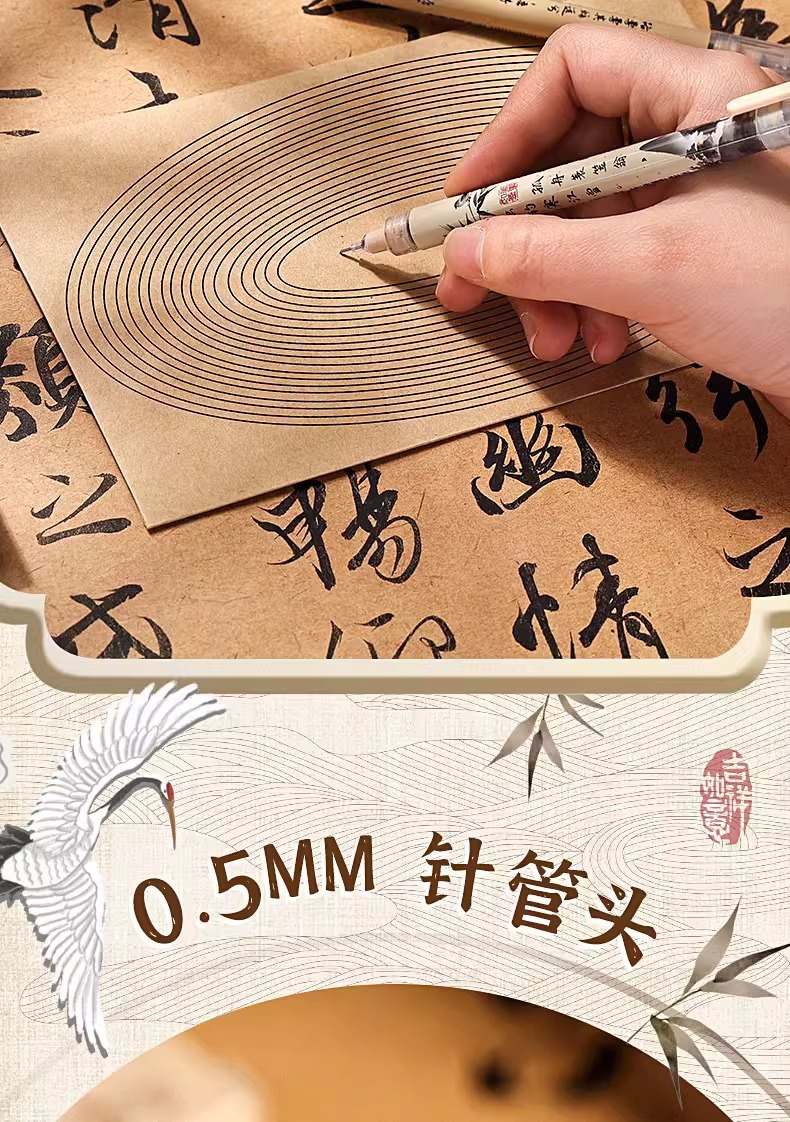 Guochao 워킹 비드 스트레이트 액체 젤 펜 시그니처 펜 학생 답변 브러시 블랙 볼펜 Guofeng 하이 컬러 값 블랙 펜