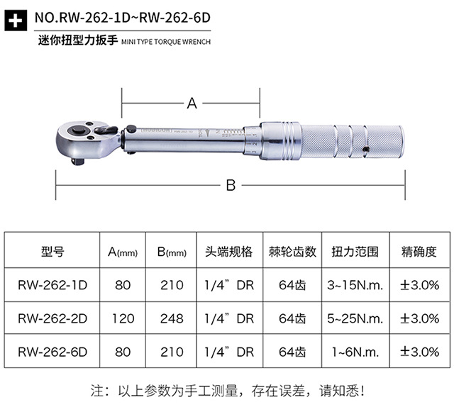 일본 로빈 후드 토크 렌치 수입 사전 토크 렌치 조정 가능한 토크 RW-262-1D 2D