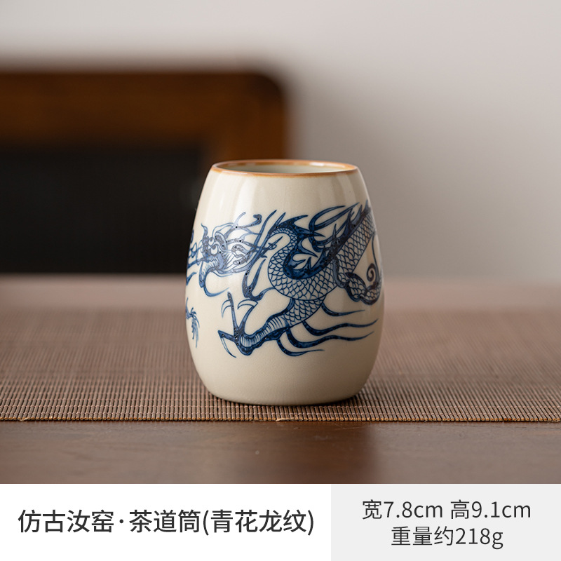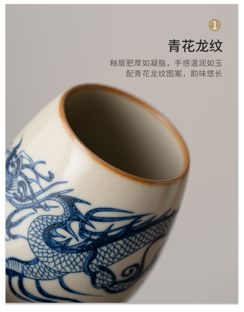• 베이지 루 가마 다도 병 [파란색과 흰색 용 패턴]
