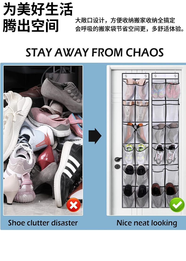 국경을 넘어 인기 있는 아마존 신제품 12칸 대형 포켓 메쉬 천 수납 걸이백 문 뒤 신발 걸이백스토어 가기