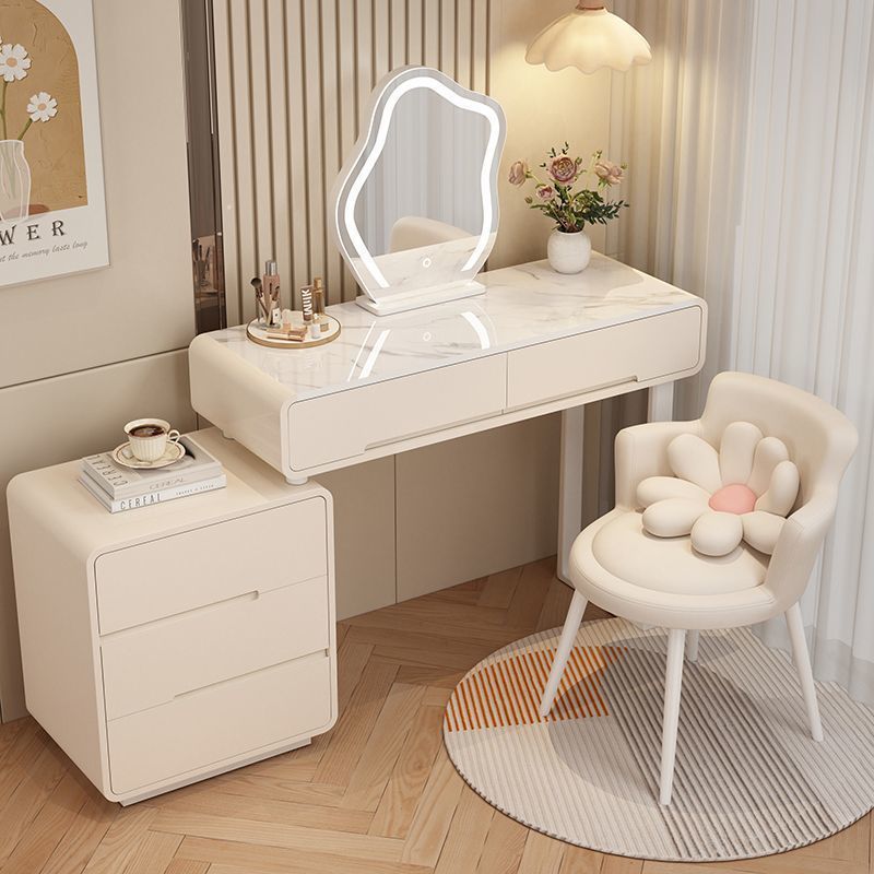 드레싱 테이블 크림 스타일 록 보드 작은 가정용 침대 테이블 통합 인터넷 유명 텔레스코픽 드레싱 테이블 침실 빛 럭셔리 현대 단순