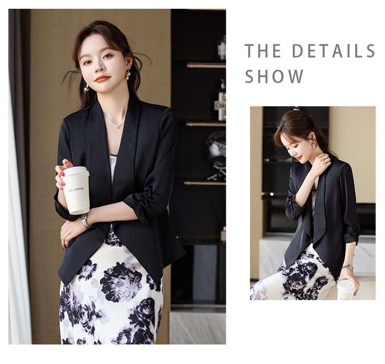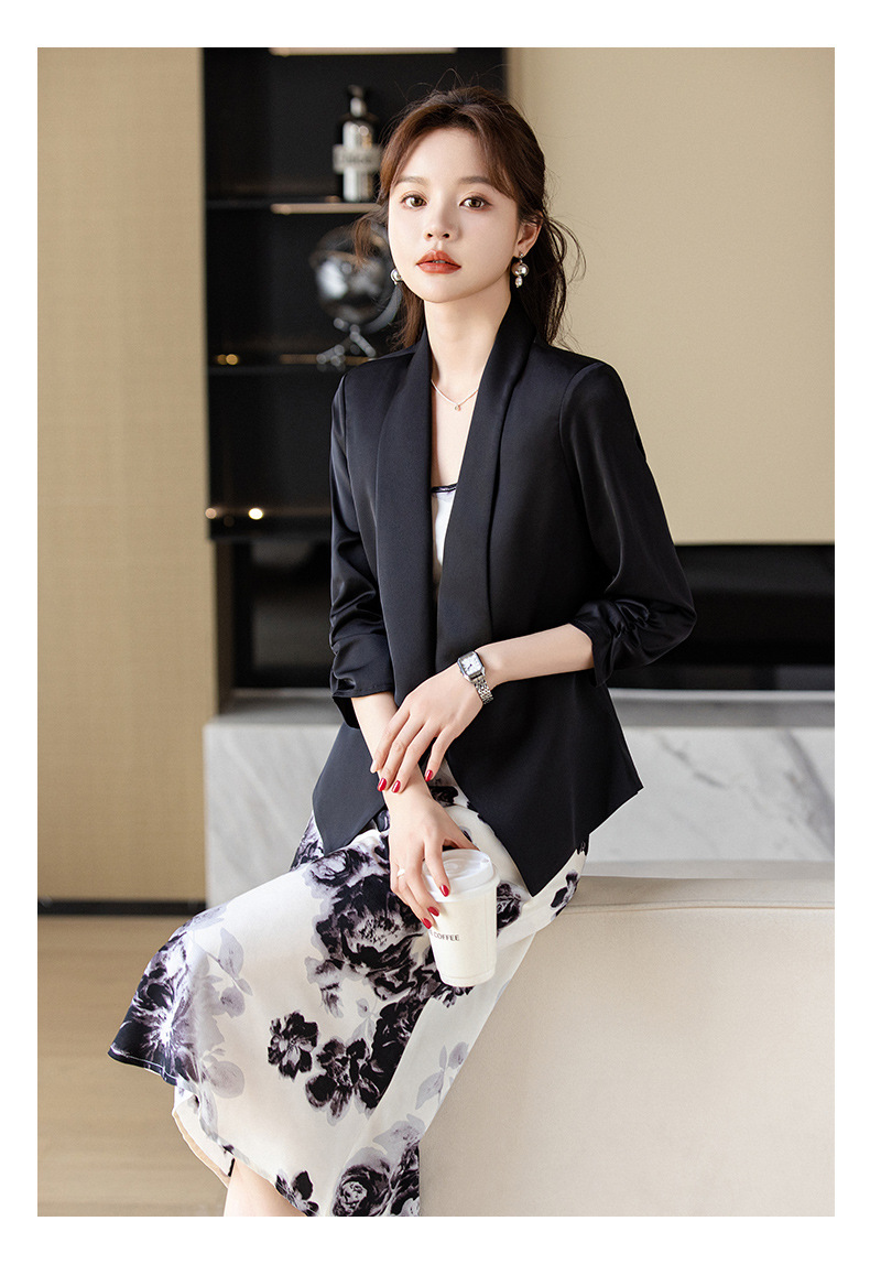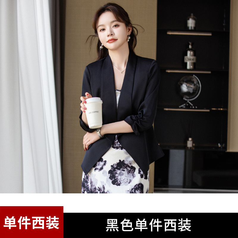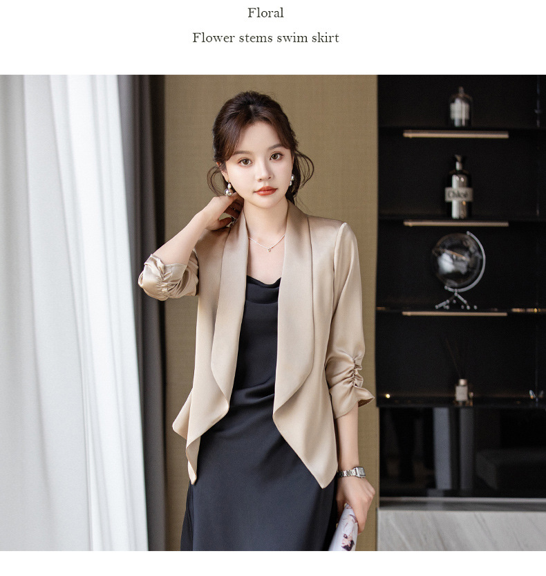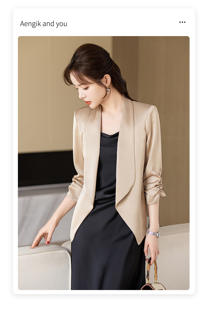 아세트산 새틴 작은 세트 재킷 여성 봄 2024 새로운 여신 팬 전문 착용 패션 우아한 외부 탑스토어 가기