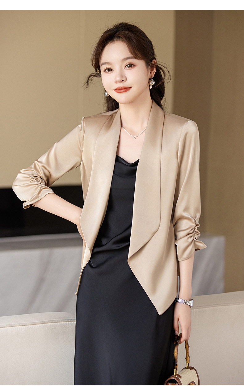 아세트산 새틴 작은 세트 재킷 여성 봄 2024 새로운 여신 팬 전문 착용 패션 우아한 외부 탑
