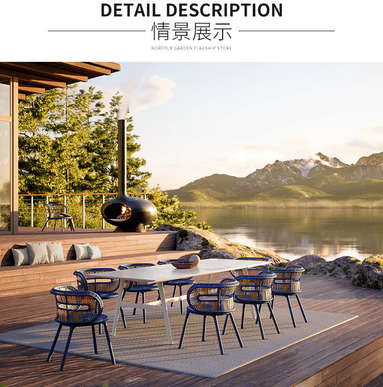 야외 테이블과 의자 다이닝 테이블 등나무 의자 락 보드 발코니 창조적 인 안뜰 간단한 레저 빌라 콤비네이션 룸 야외 가구