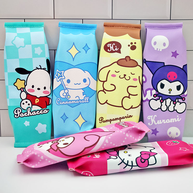 산리오 가족 연필 가방 Kulomi Merotti Jingle Patchia 개 밀크 지퍼 연필 가방 문구 용품 가방