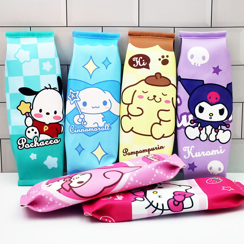 산리오 가족 연필 가방 Kulomi Merotti Jingle Patchia 개 밀크 지퍼 연필 가방 문구 용품 가방스토어 가기
