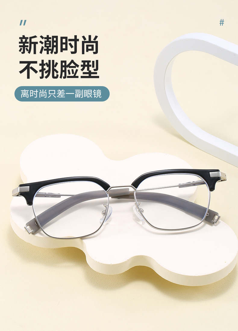 트렌디 한 눈썹 프레임 안경 안티 블루 방사선 평면 거울 새로운 패션은 근시 학위를 장착 할 수 있습니다스토어 가기