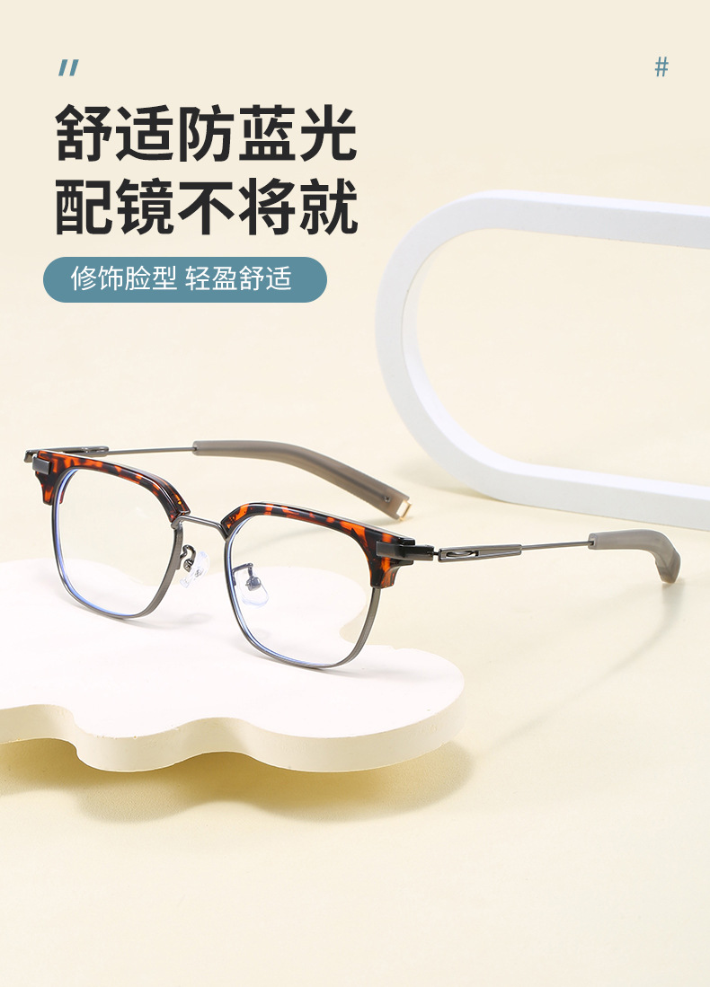트렌디 한 눈썹 프레임 안경 안티 블루 방사선 평면 거울 새로운 패션은 근시 학위를 장착 할 수 있습니다