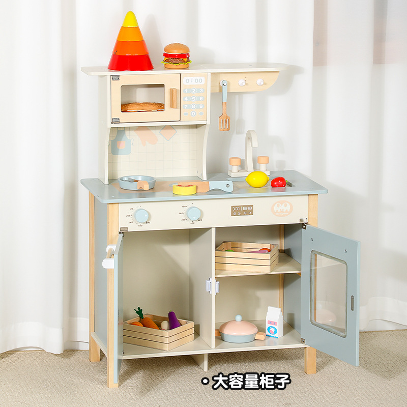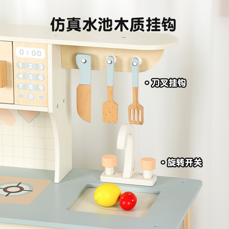 나무 놀이 집 북유럽 스타일 주방 스토브 어린이 시뮬레이션 요리 및 요리 세트 나무 아기 장난감스토어 가기